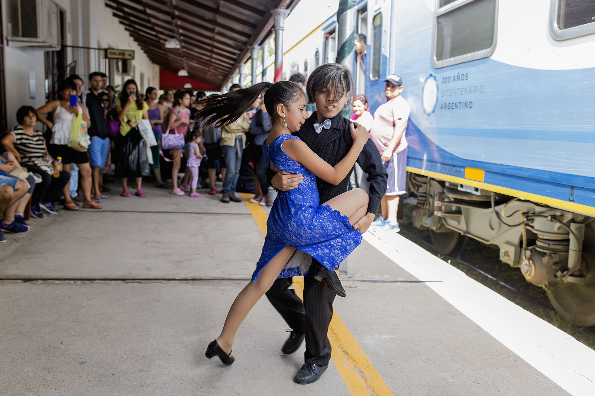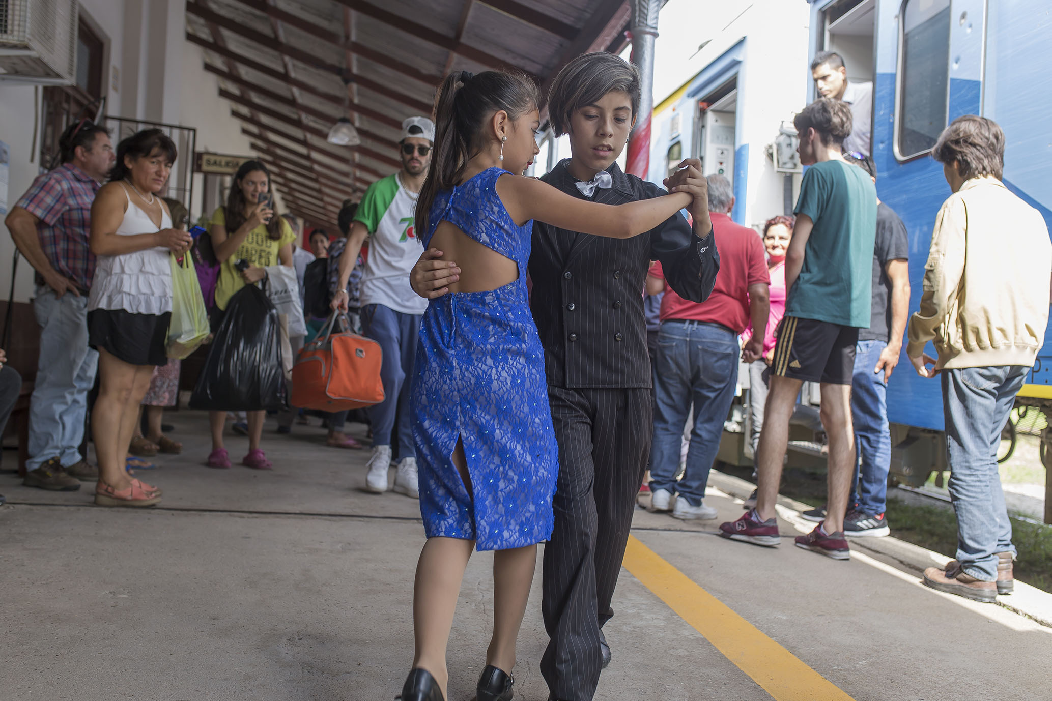 Organizado por la Dirección de Educación y Cultura, esta mañana se realizó otra exitosa intervención artística en el andén de la Estación del Ferrocarril en el momento de la detención del tren para ascenso y descenso de pasajeros.