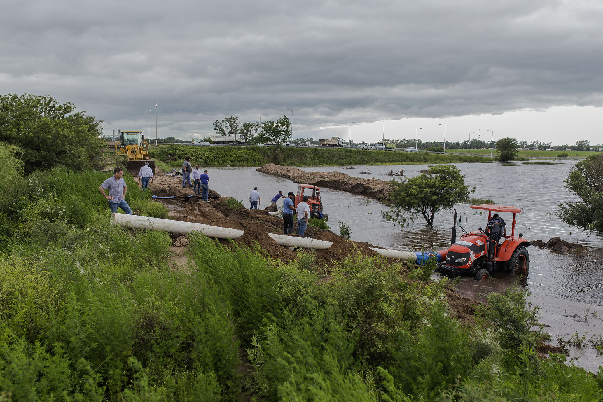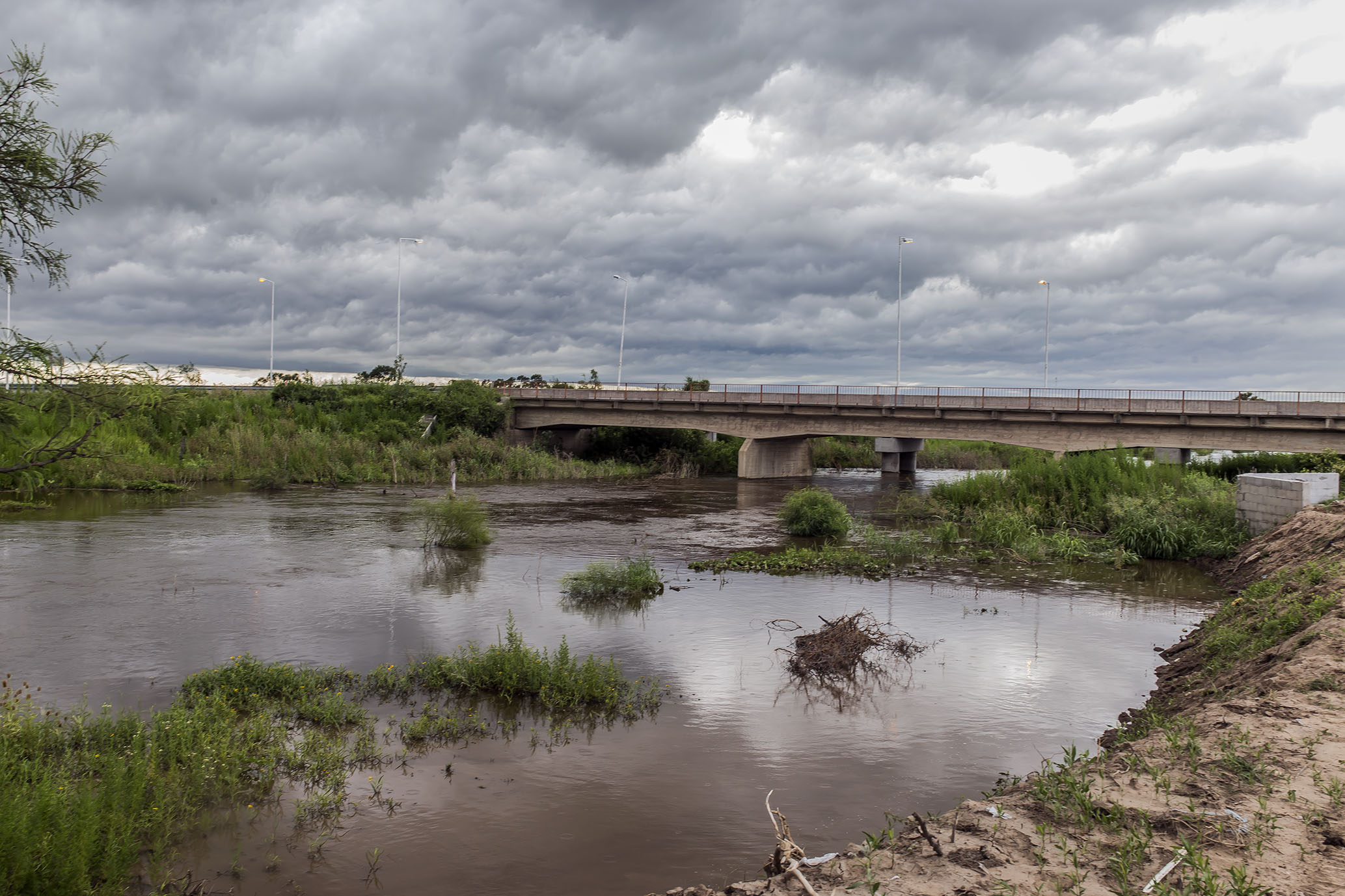 Así, las corrientes de agua provenientes del Oeste, de la zona de Morrison, ingresan por la parte Norte de la ciudad y son reconducidas al Canal Derivador con la laguna de contención sobre la que se estuvo trabajando previamente.