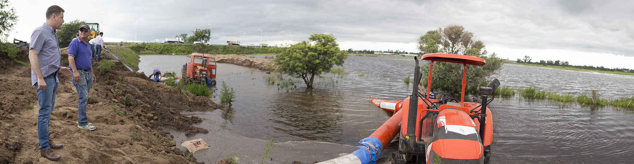 El intendente visita permanentemente la zona de trabajo de bombas extractoras de agua o arroceras y concurre al cuartel de Bomberos Voluntarios, a fin de coordinar acciones con Defensa Civil.
