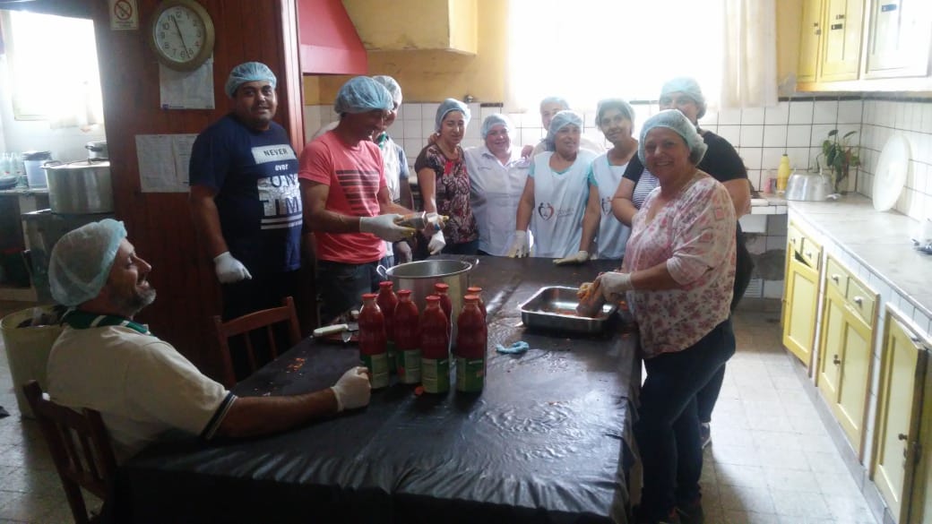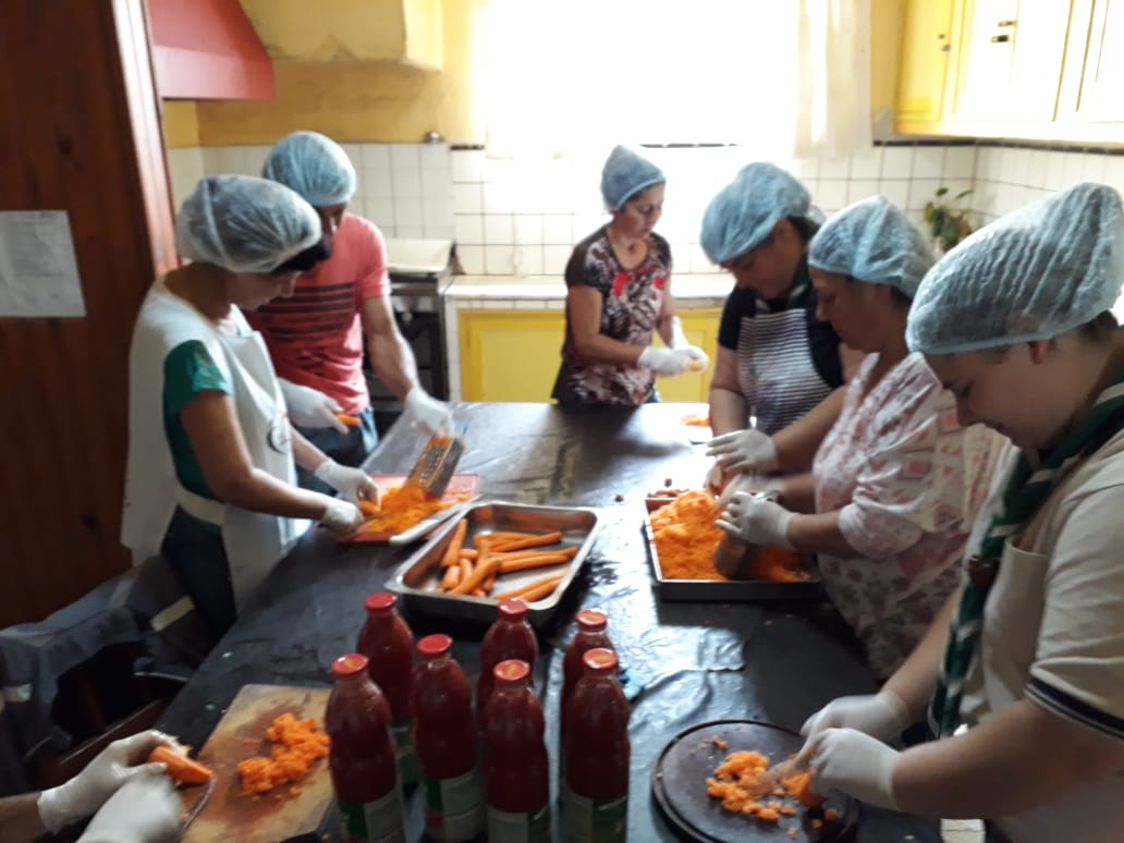Con ejemplar dedicación y cariño, integrantes de ONG’s solidarias integrantes del “Segundo Anillo de Defensa Civil”, elaboran el menú diario para los afectados por los anegamientos.