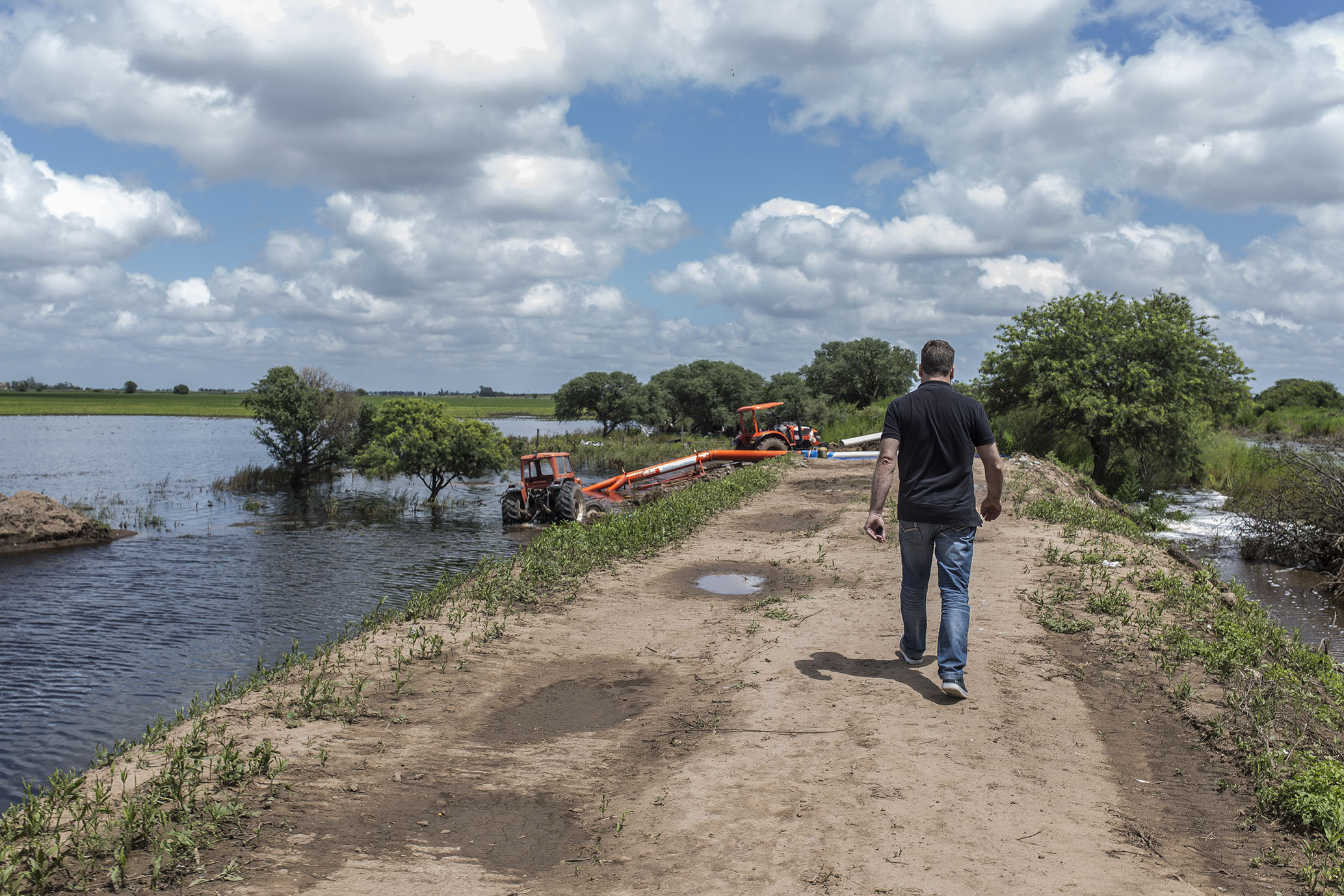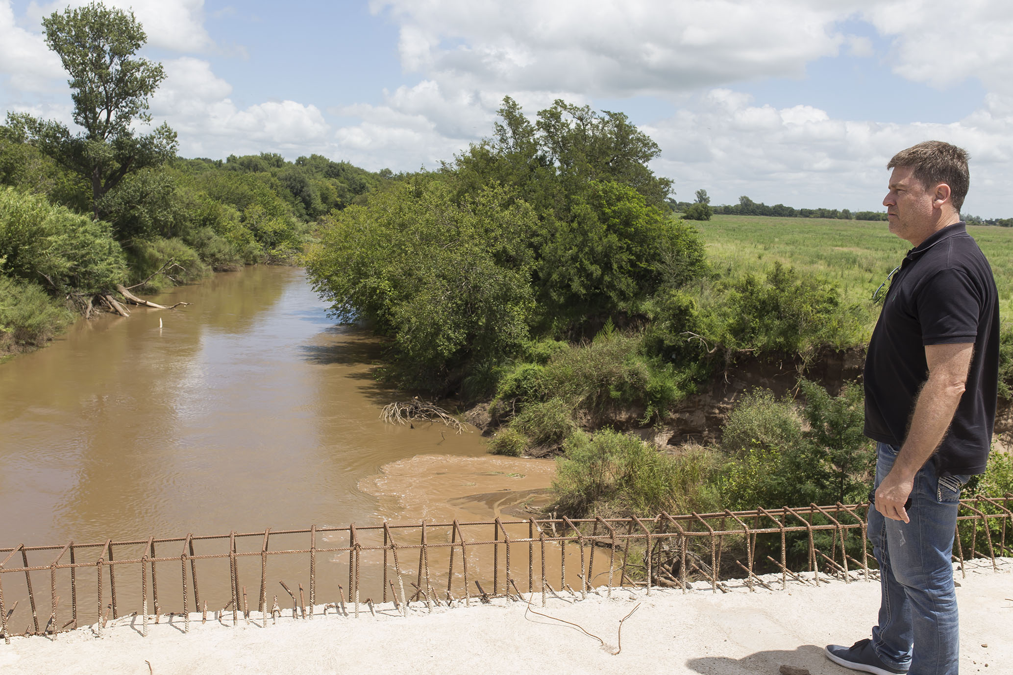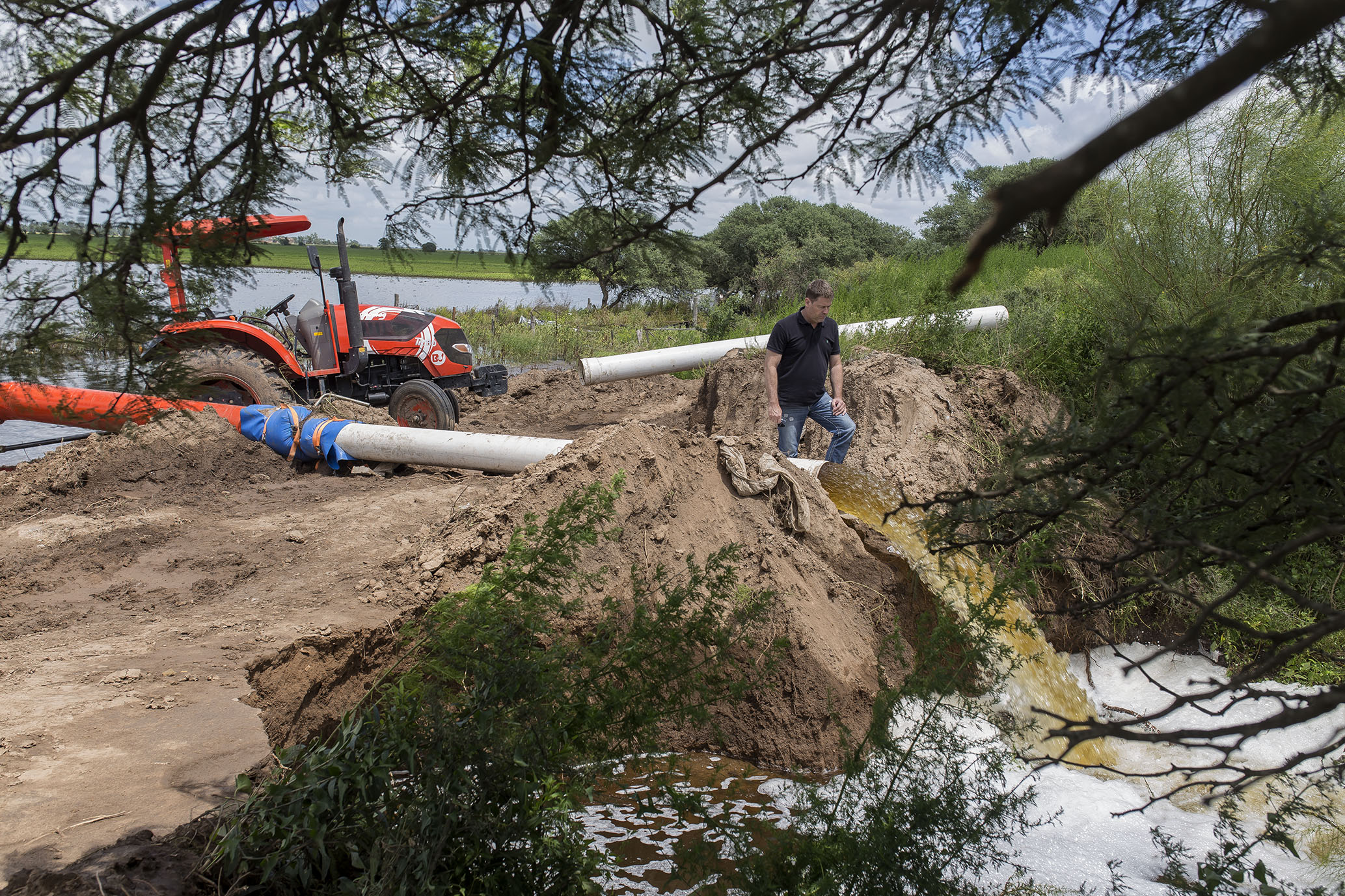 El intendente y presidente de Defensa Civil, Dr. Carlos Briner, se hizo presente esta mañana supervisando tanto esta tarea como la del funcionamiento de las bombas extractoras en el sector crítico al Norte de la ciudad.