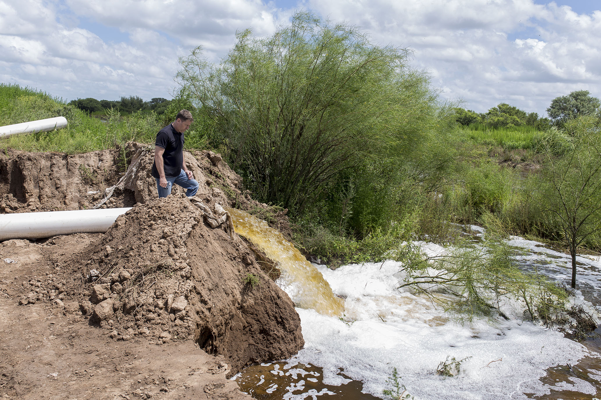 Concretamente operan en la salida del canal que está sufriendo erosión por la gran cantidad de agua que evacúa.