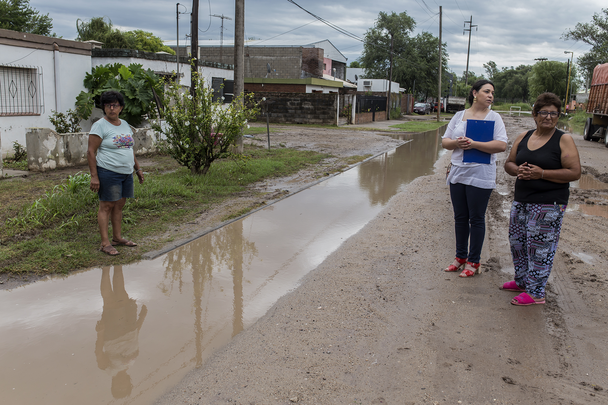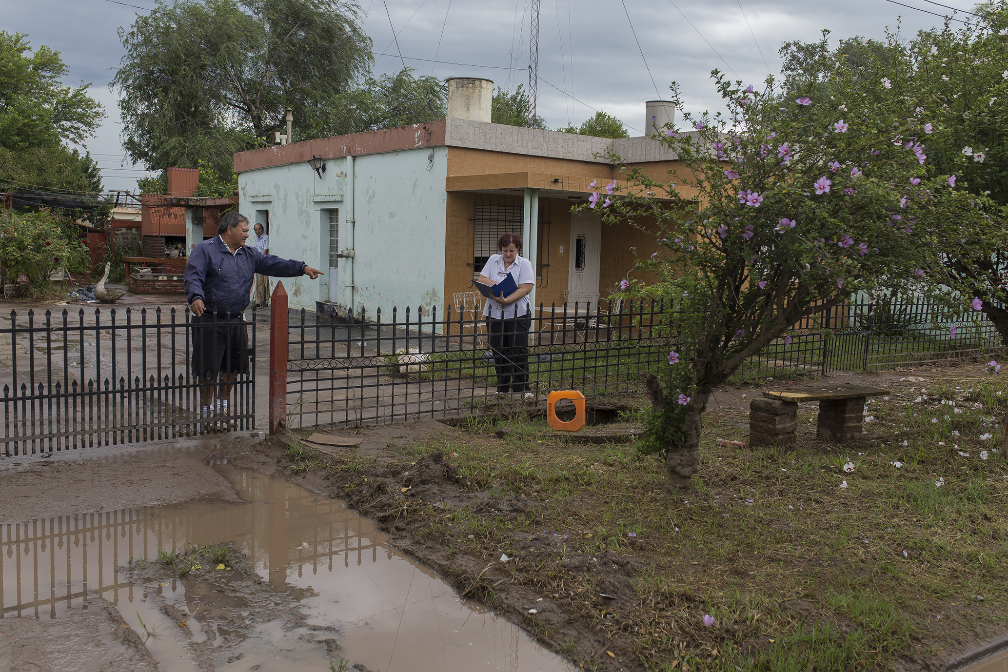Personal de la Dirección de Acción Social de la Municipalidad encabezadas por la Lic. Ivana Alegnani, visitó a vecinos de calle Cura Ferreyra con el fin de tomar contacto con las familias que han tenido que sobrellevar los efectos de los anegamientos de días pasados.