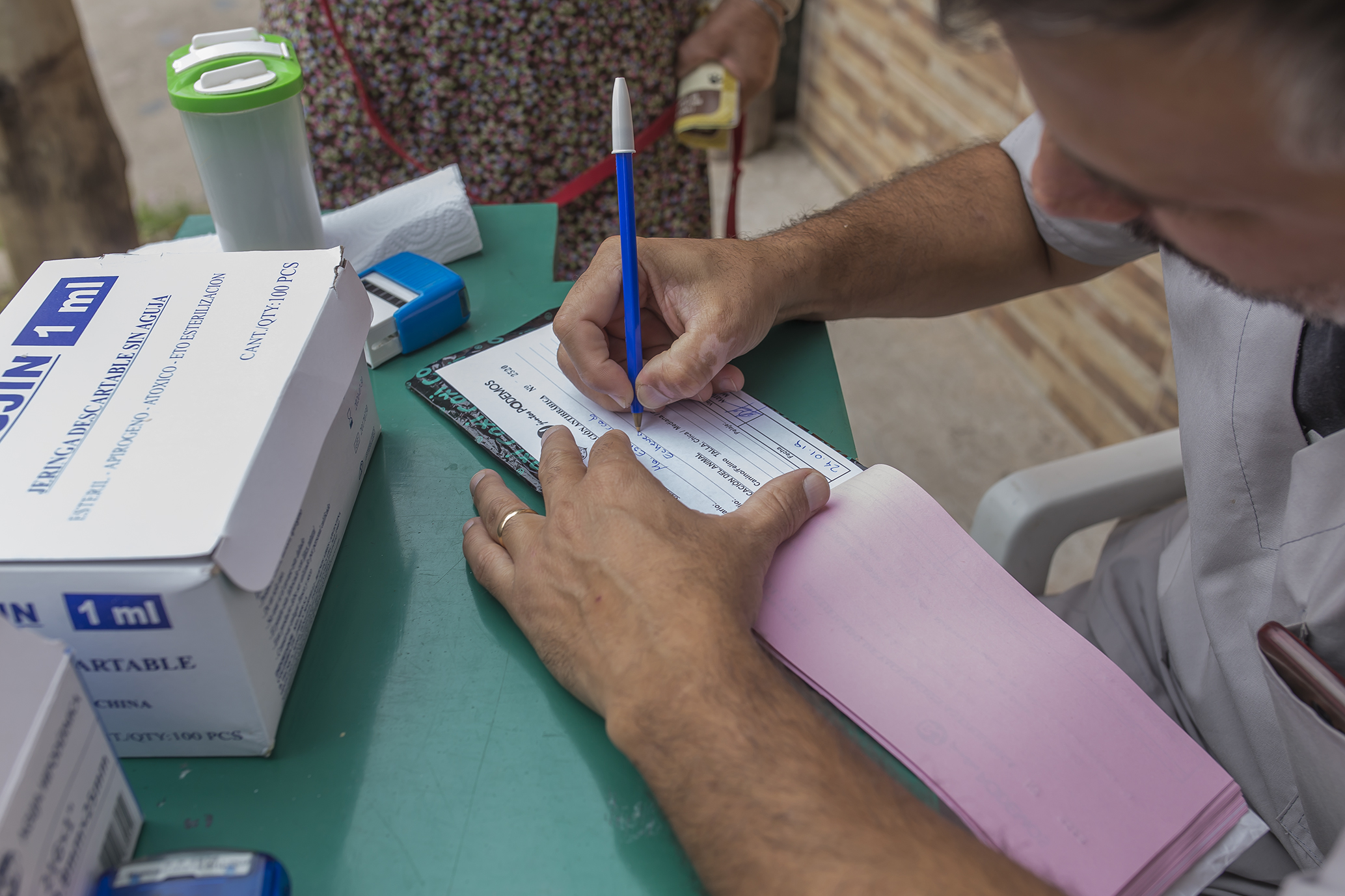Personal del Centro Municipal de Salud Animal instaló esta mañana un puesto de vacunación antirrábica en calle Echeverría al 573, en cercanías del predio de la Asociación de Discapacitados Visuales.