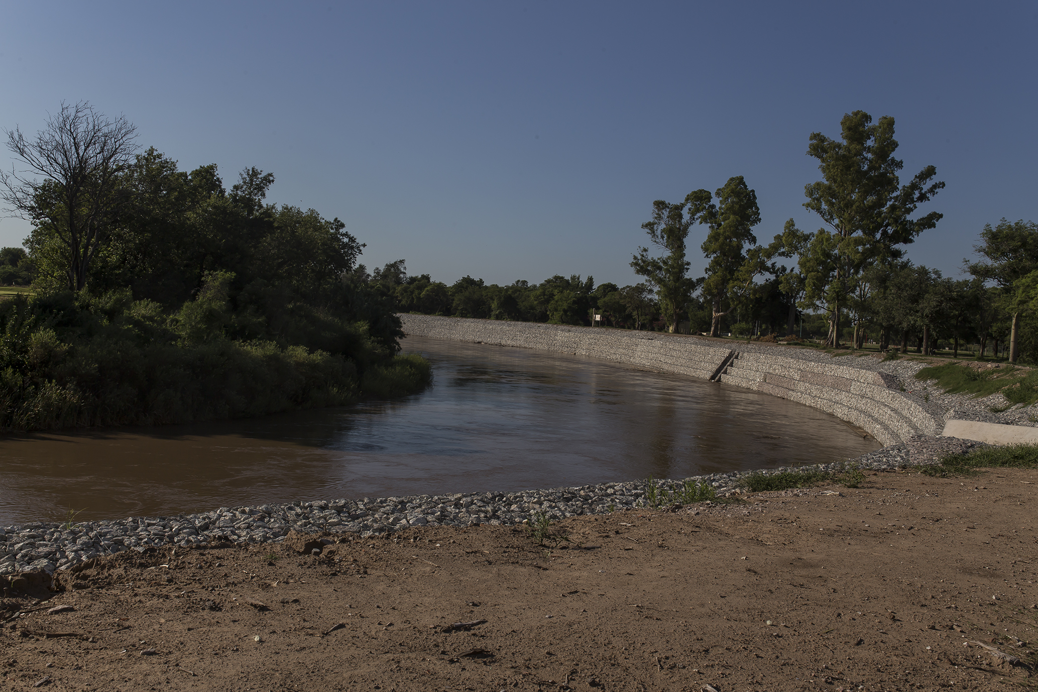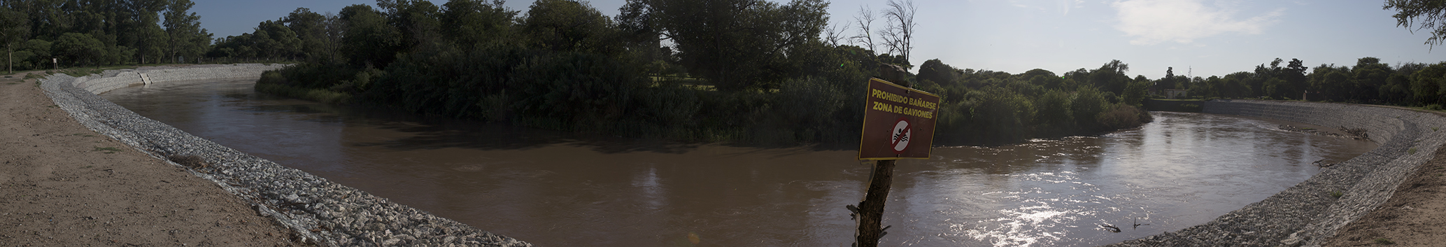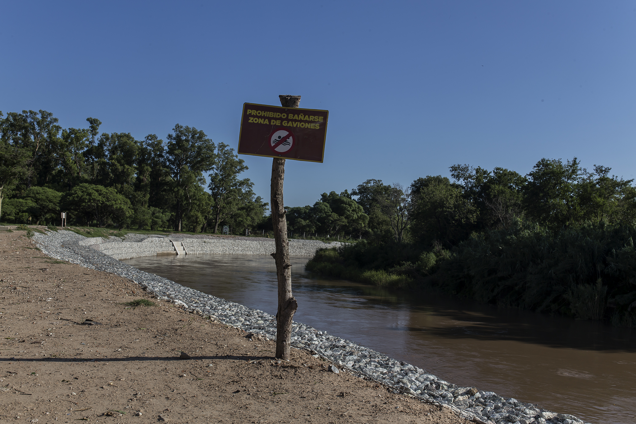Al finalizar la obra de gaviones en las barrancas del Ctalamochita, en la zona del Parque Tau, se han colocado carteles advirtiendo que no está permitido bañarse en esos lugares.