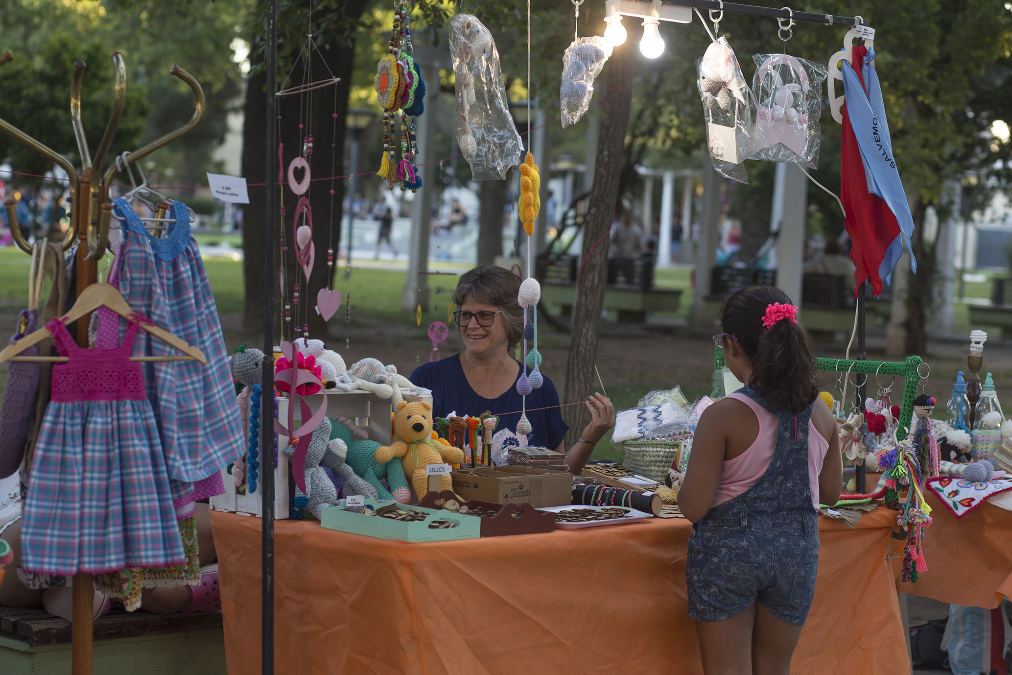 Más de una decena de stands con tejidos, vitrofusión, artesanías y hasta juego para niños, concitaron la atención de quienes disfrutaron de esta propuesta al aire libre.