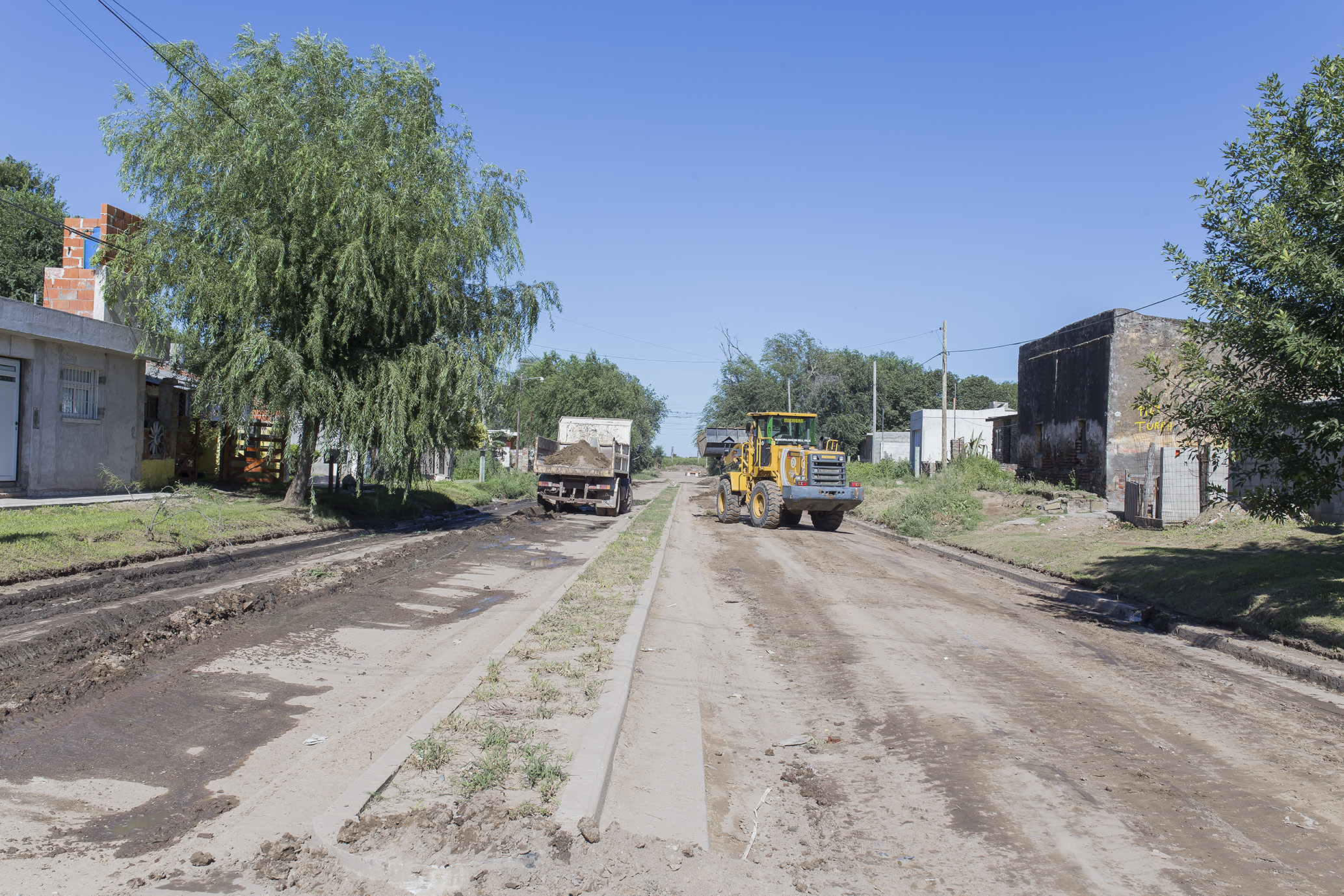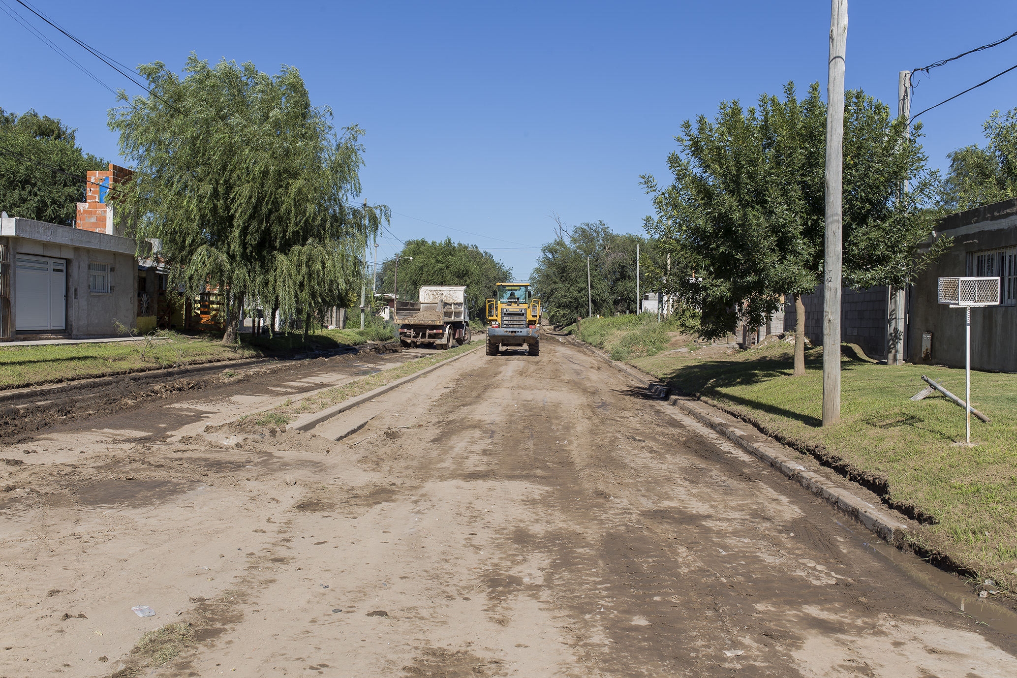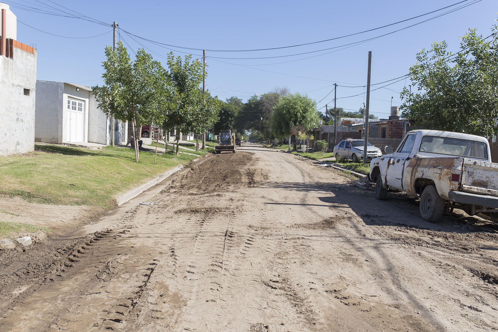 Aprovechando las buenas condiciones climáticas, se acentúa el arreglo de calles de tierra. Maquinarias y personal municipal intervinieron en bulevar Illia en el nivelado de esa arteria.