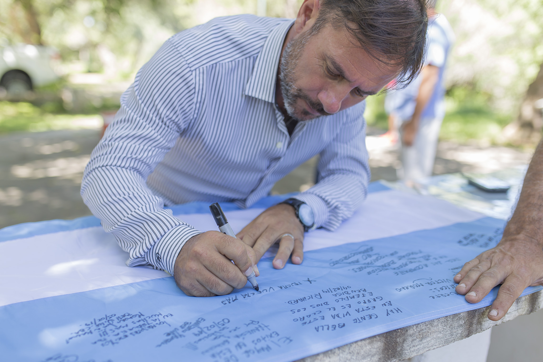 Aparte de reponer fuerzas con choripanes, los visitantes recibieron de manos del edil Yanchuc una pelota de fútbol y remeras que identifican a la ciudad como Capital Nacional de la Pelota de Fútbol.