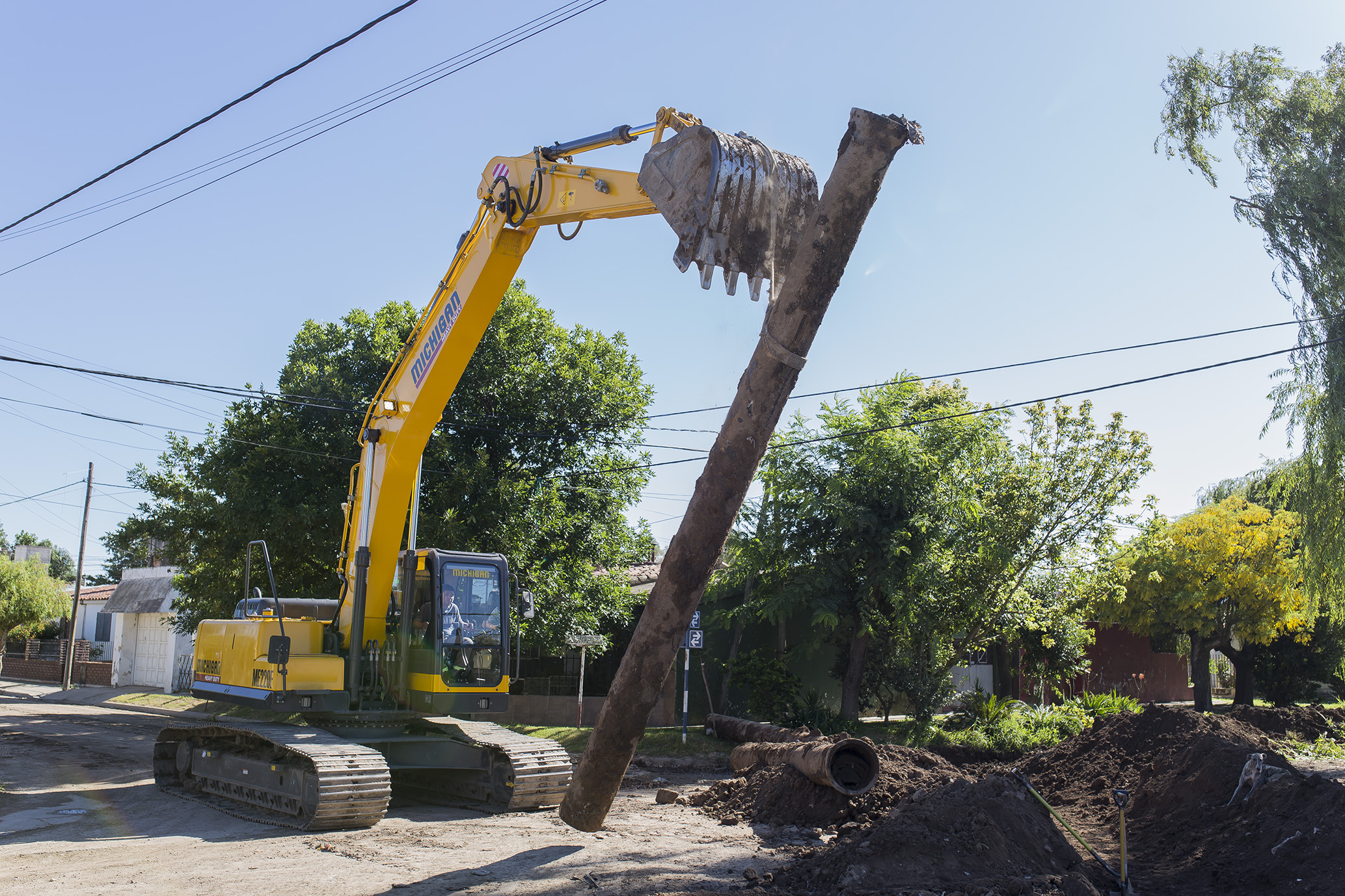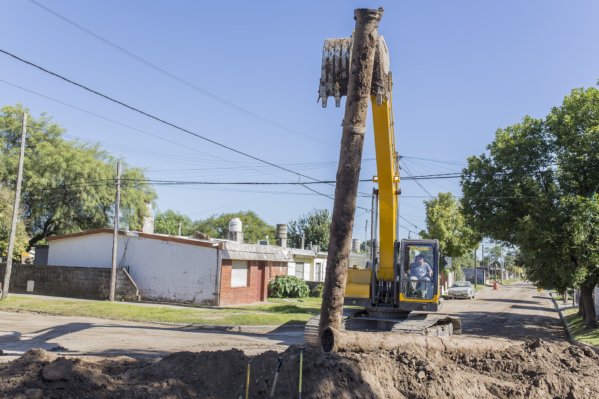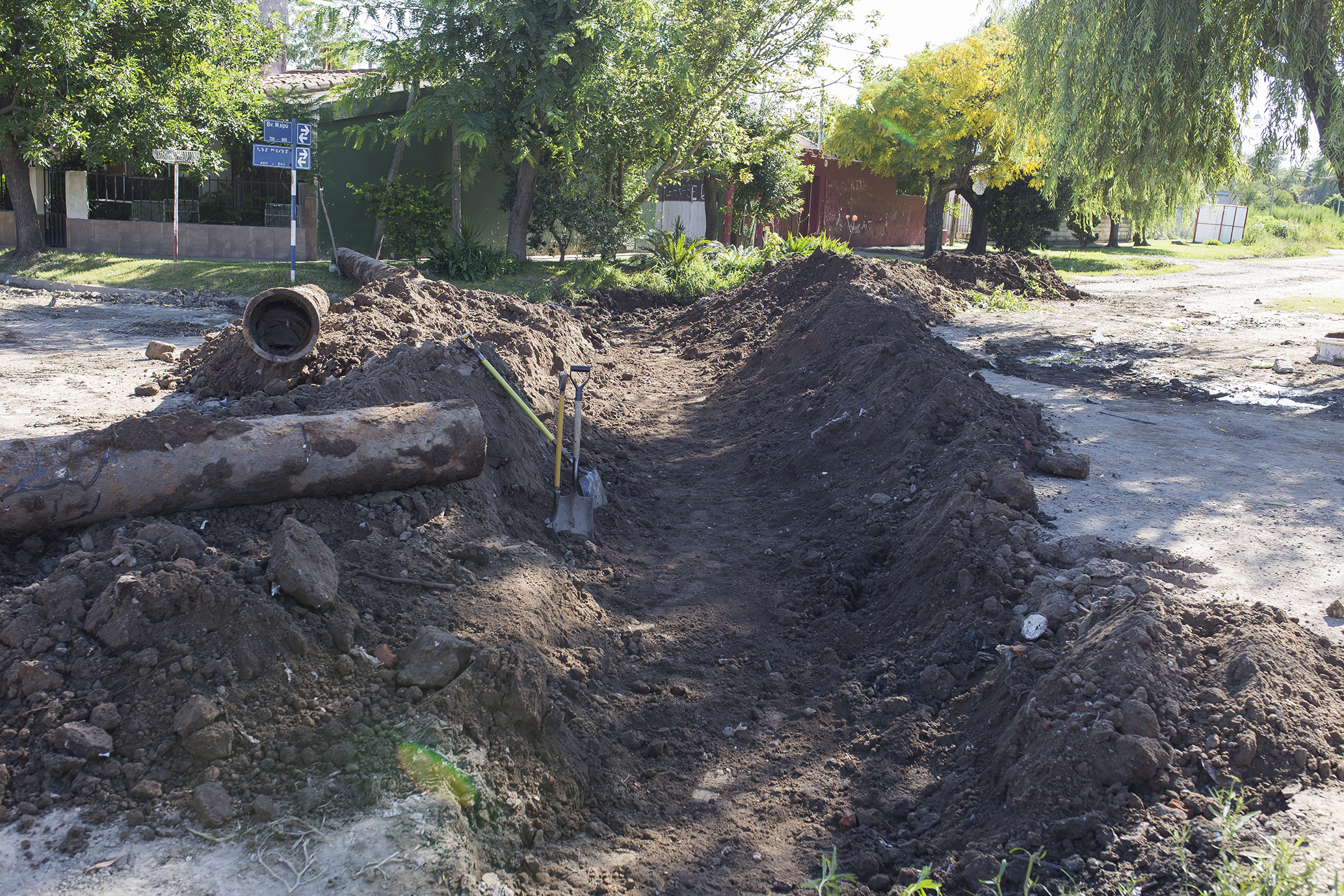 Se trabaja en la limpieza de alcantarillas en bulevar Maipú. Simultáneamente se realiza el nivelado y mejoramiento de cunetas en calles de tierra cercanas a esa arteria principal.