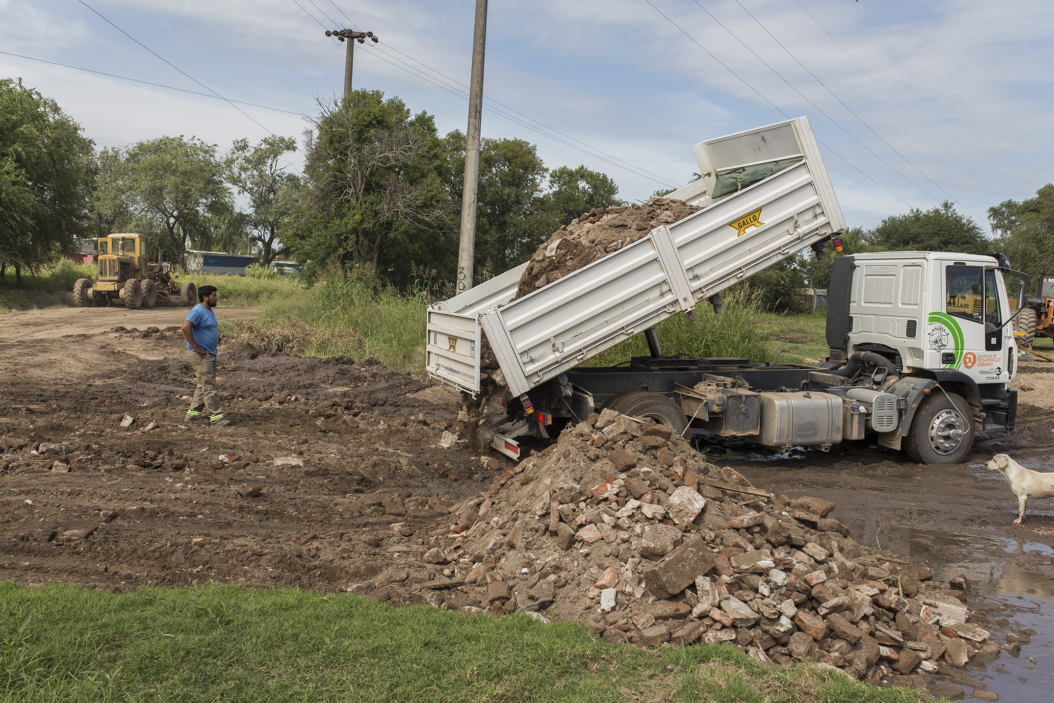 Especialmente se rellenaron con escombros aquellos lugares más erosionados por el paso del agua y se niveló la calle, incorporándosele áridos. En los próximos días se agregarán otras obras complementarias al sector.
