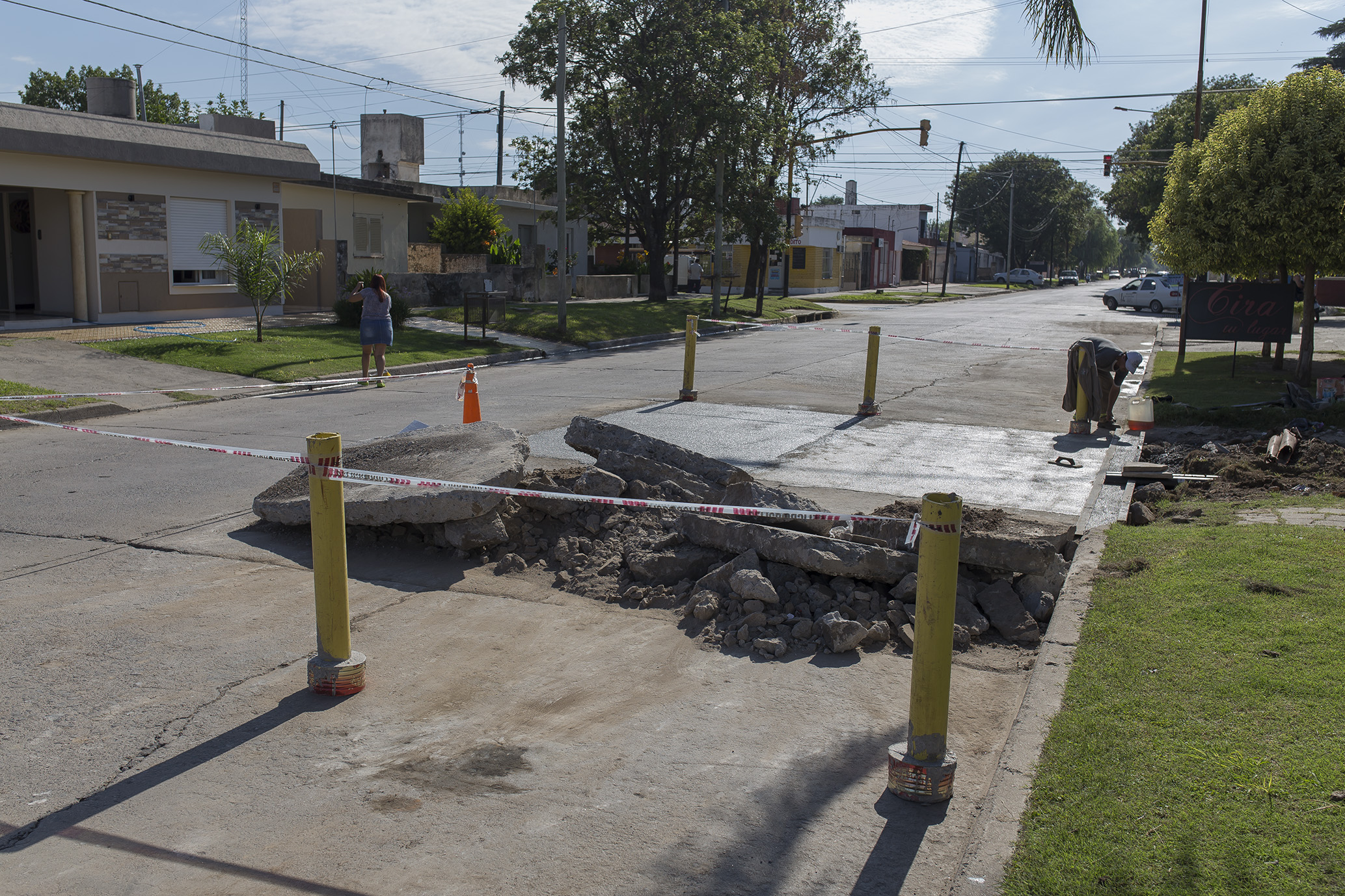 Prosigue la reparación de sectores dañados en la parte de hormigón de bulevar Presidente Perón.