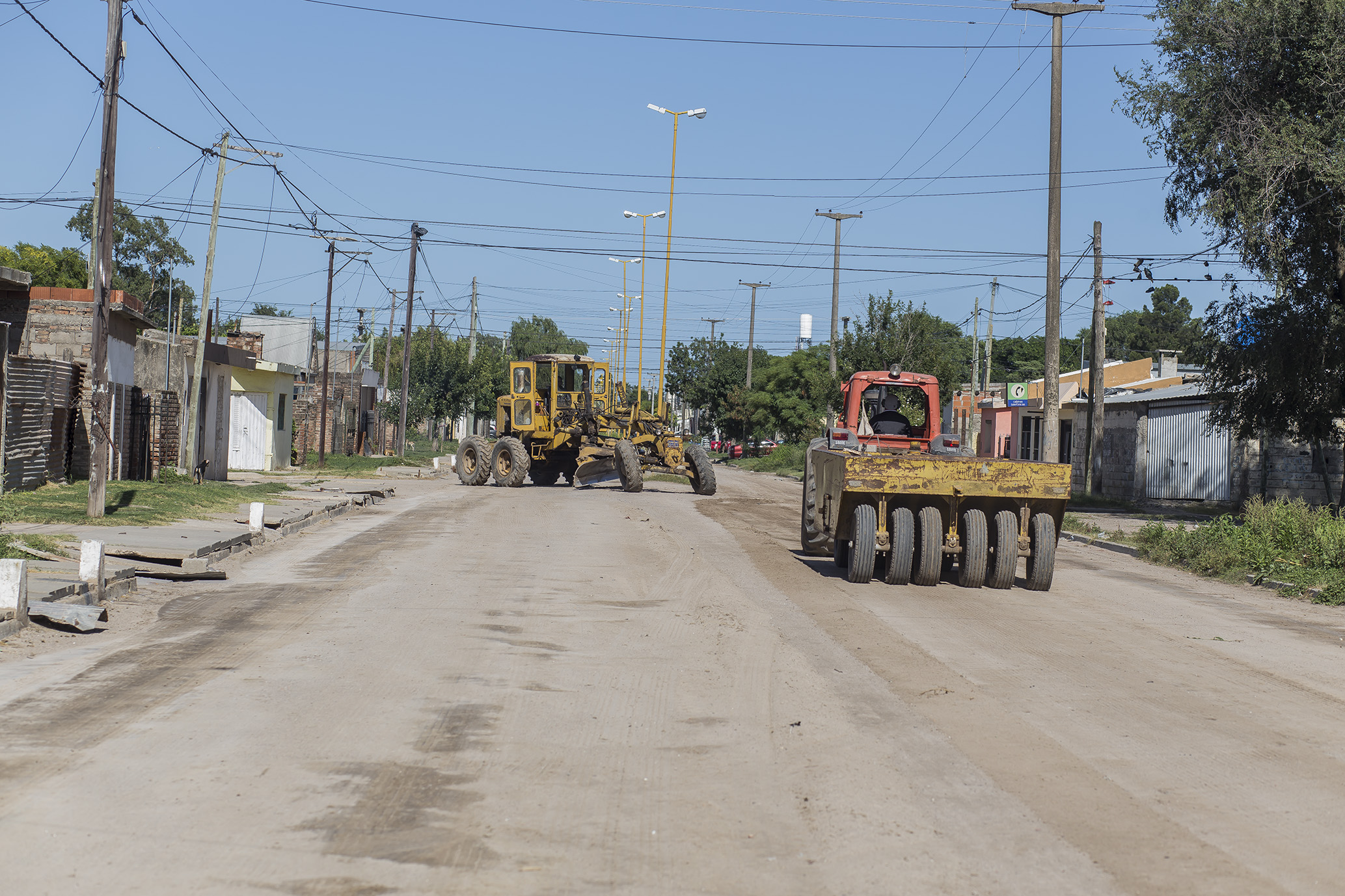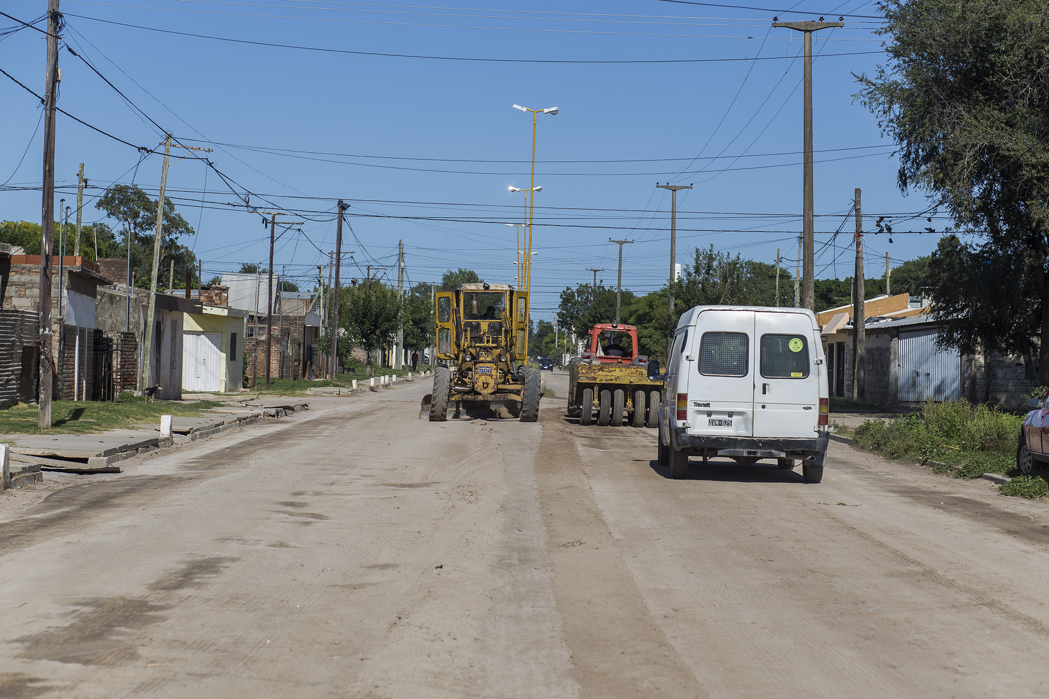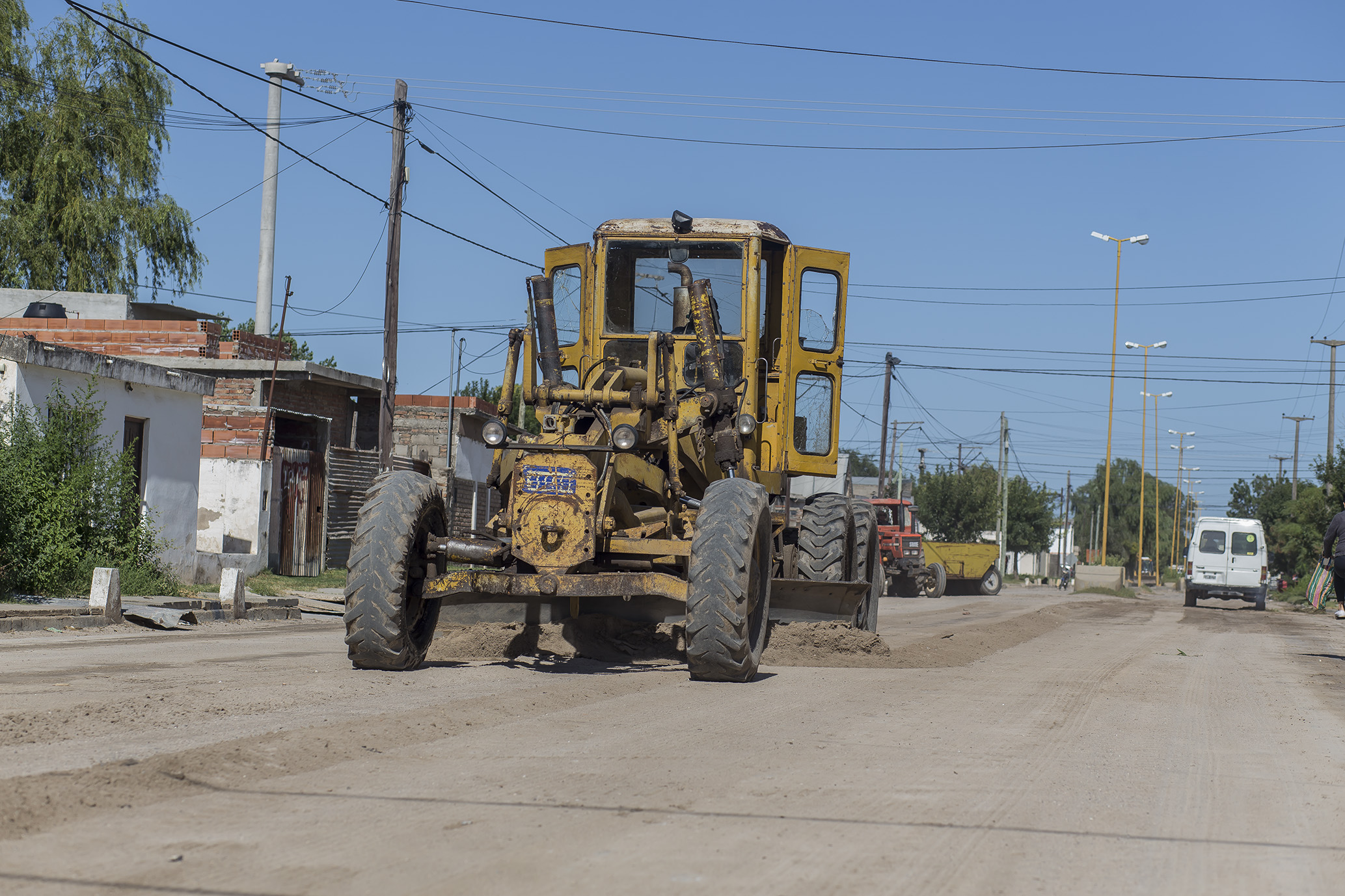 En la zona de bulevar Eva Perón y calle Perito Moreno (Tránsito pesado), se interviene en las calles de tierra.