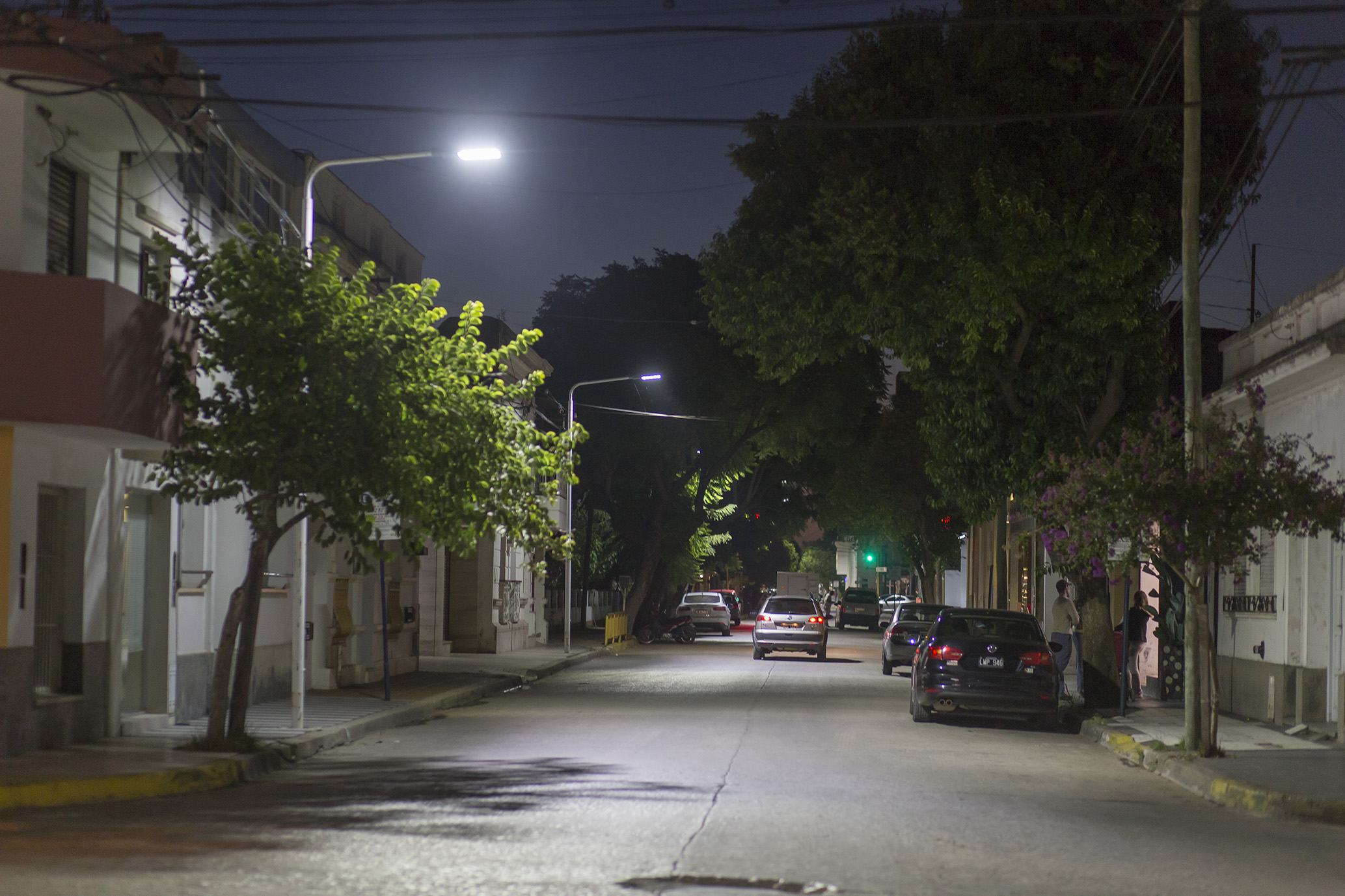 Quedaron habilitados nuevos sistemas de iluminación de la vía pública con luces Led en calle Pío Angulo entre Bv. Figueroa Alcorta y Av. España y Tucumán, entre Bv. Hilario Ascasubi e Int. Viqueira.