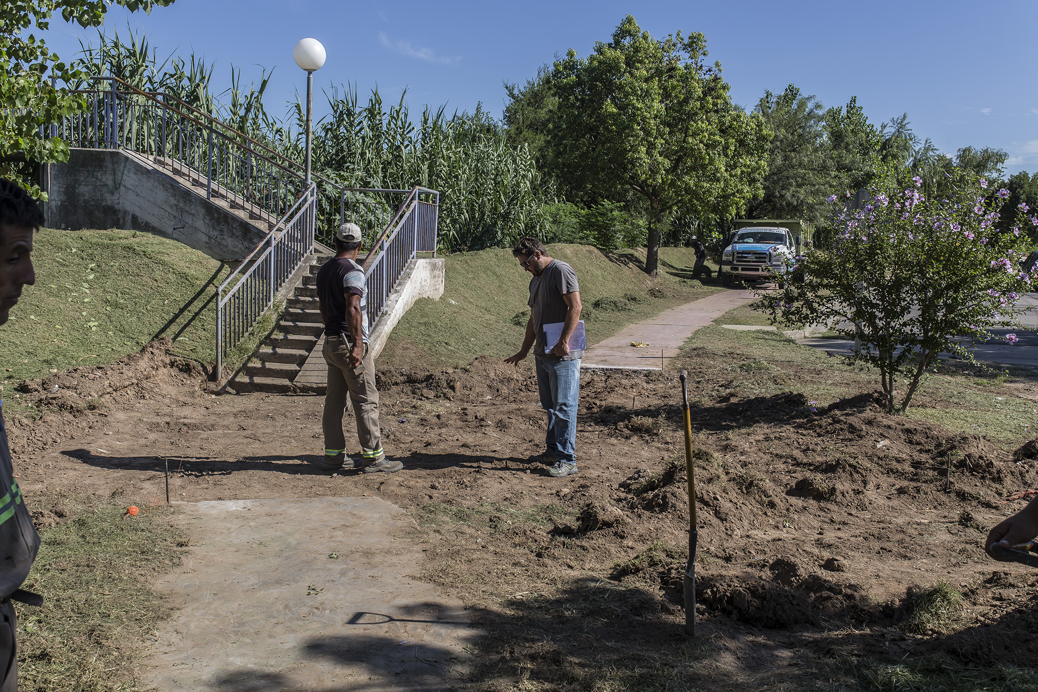 Dieron comienzo los trabajos de nivelado y posterior hormigonado del acceso por la Avenida Costanera a la pasarela sobreelevada que desemboca en barrio Portal del Río.