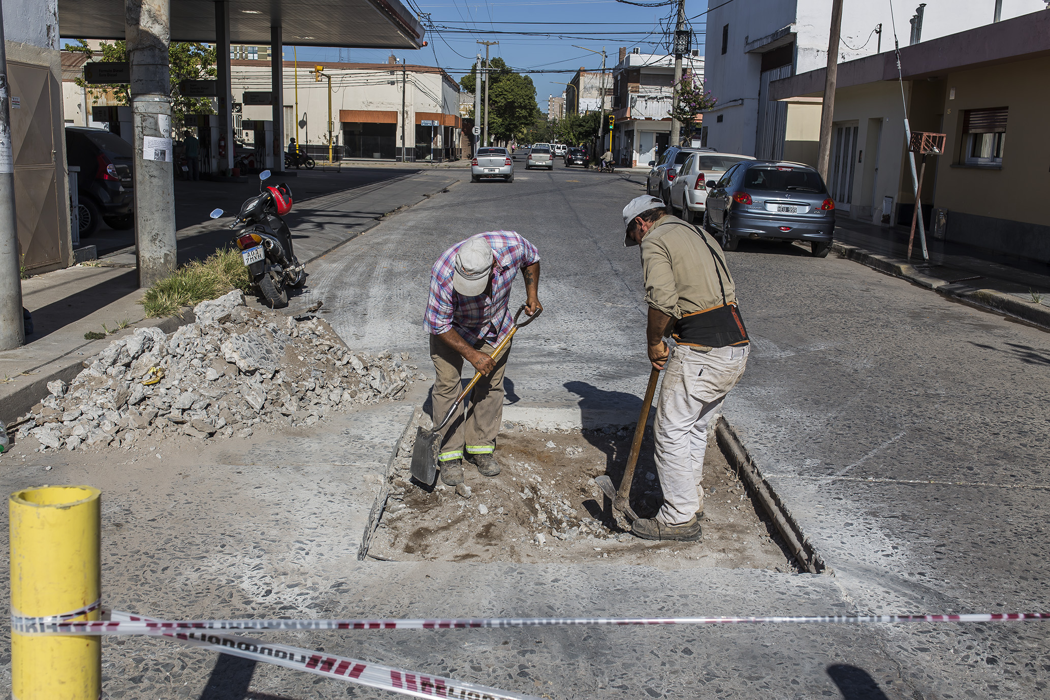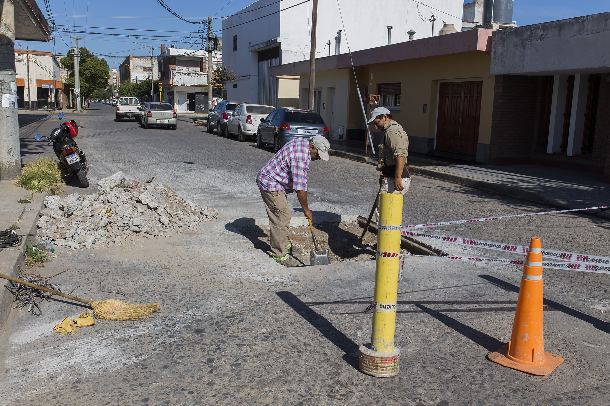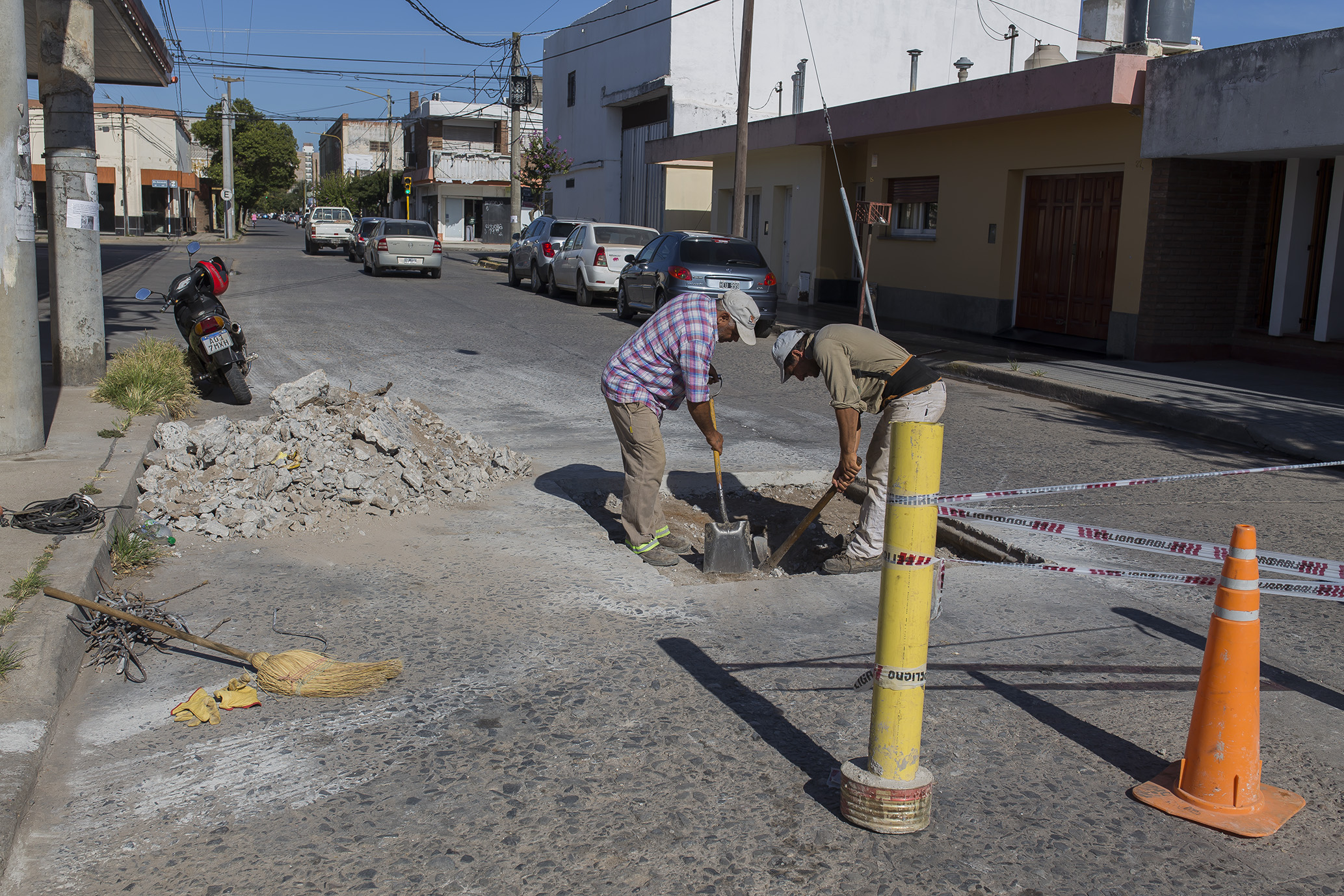 En la primera cuadra de calle Avellaneda se cumplen obras de bacheo con hormigón. Posteriormente, similar tarea se cumplirá en otro sector de bulevar Ascasubi.