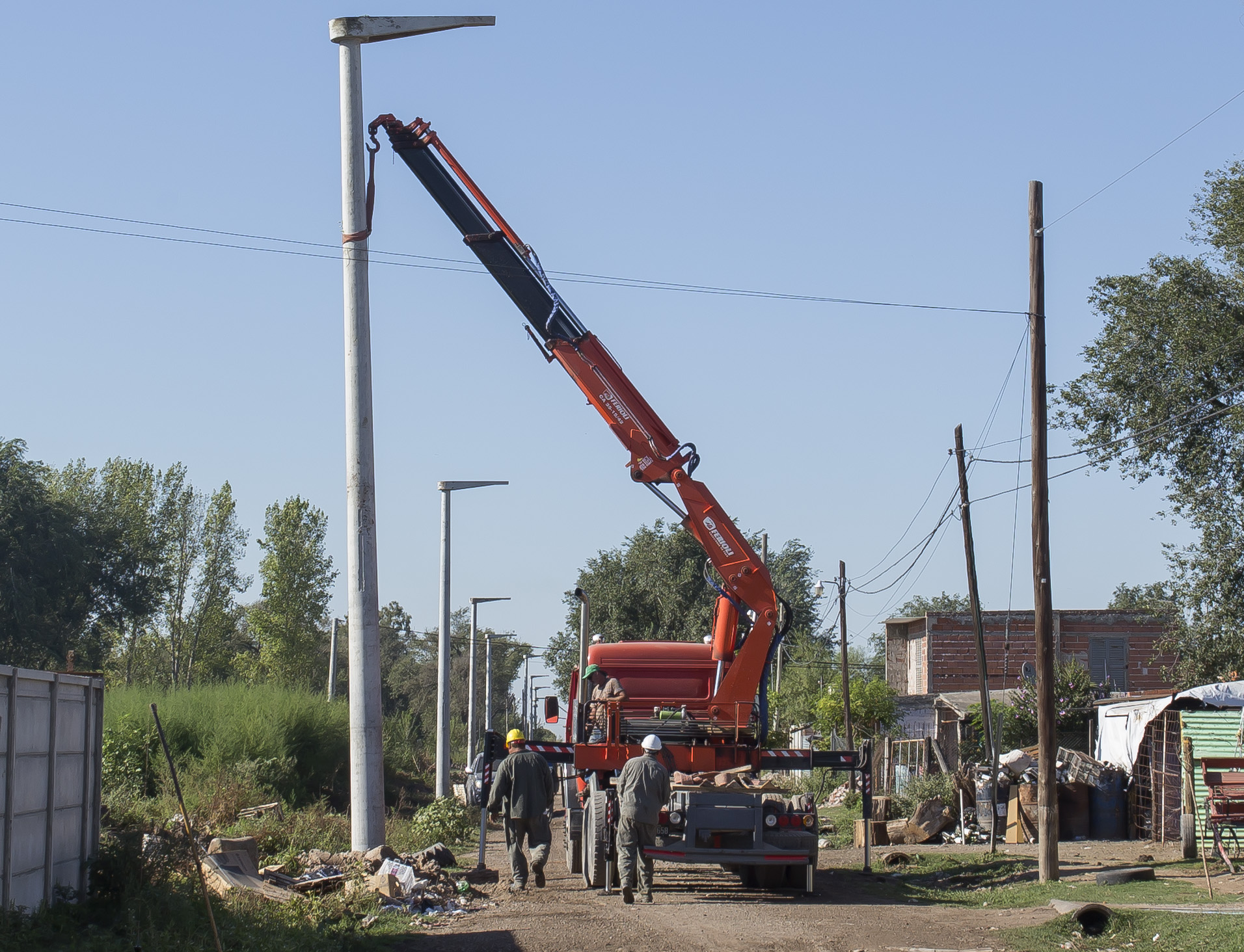 Prosigue la instalación de columnas para la línea de media tensión portadora de la energía eléctrica del loteo municipal de Bv. Ombú y calle Constitución.