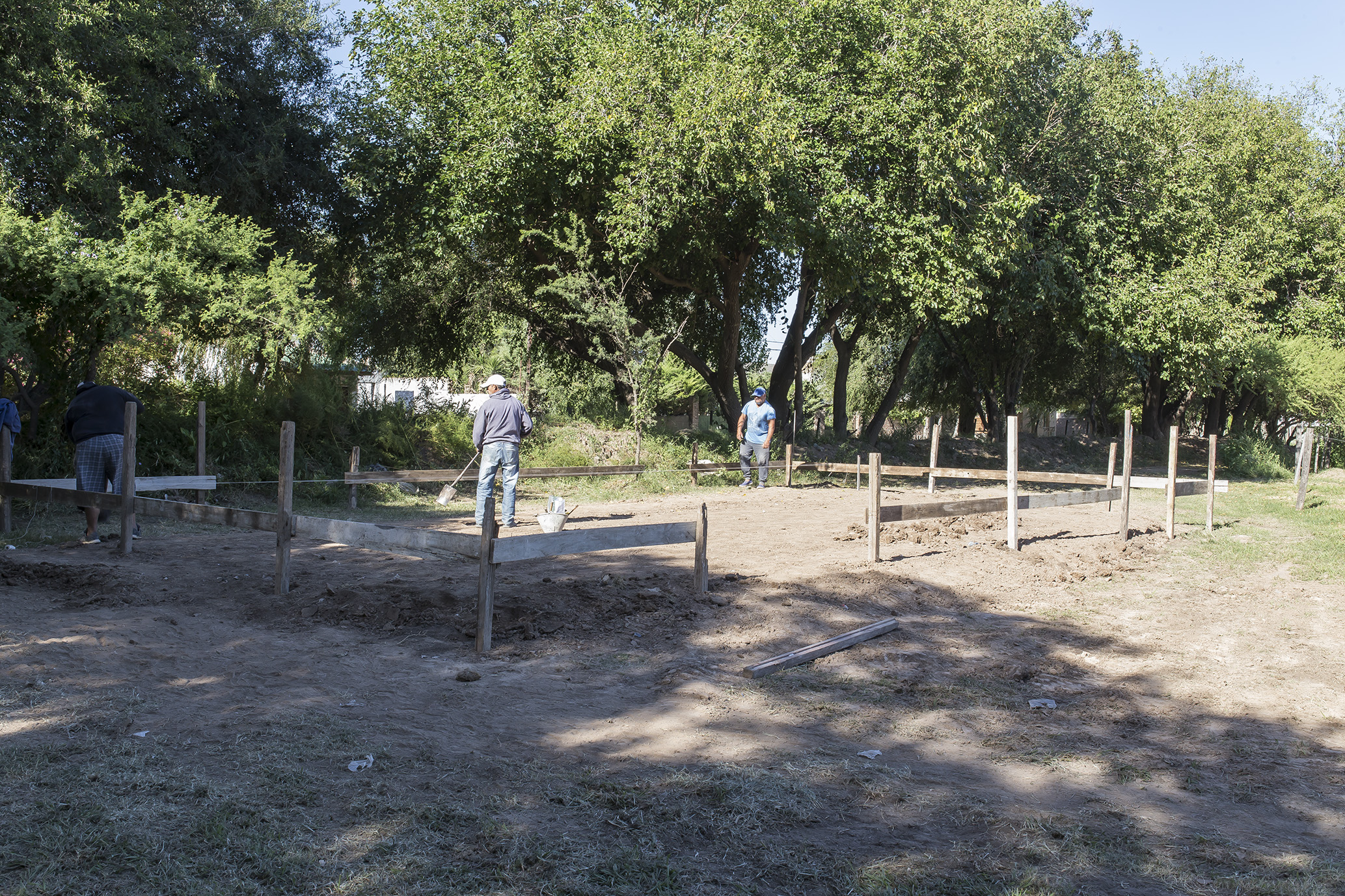 Con diseño municipal, se decidió hacer la casilla de control y resguardo de materiales en la parte Norte de la pista y en el sector Sur, los baños y vestidores por su proximidad con la red cloacal de calle Tucumán.