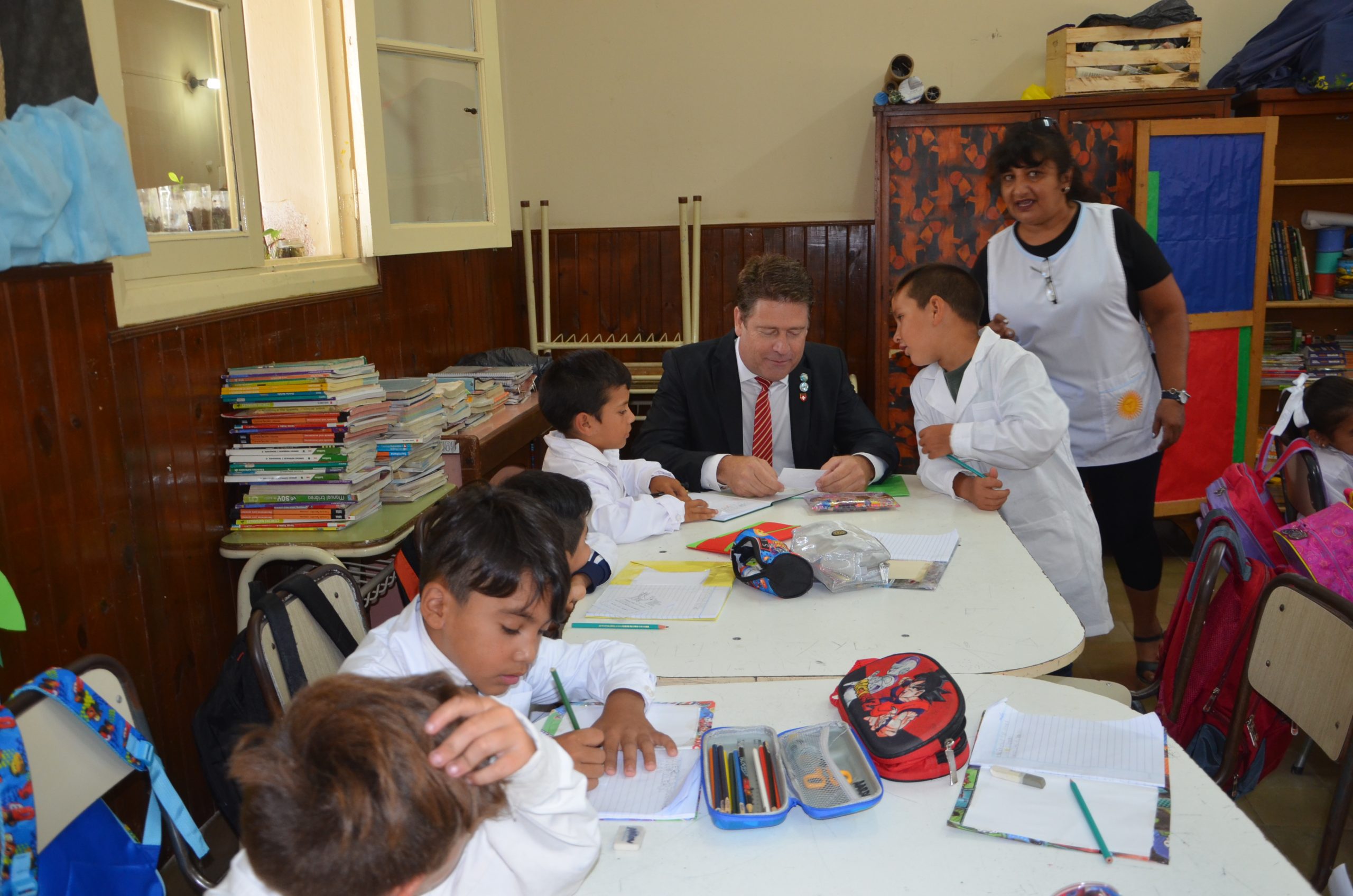 Cumpliendo una promesa hecha el año pasado, el jefe municipal recorrió las aulas y dialogó con cada estudiante y docente a cargo.