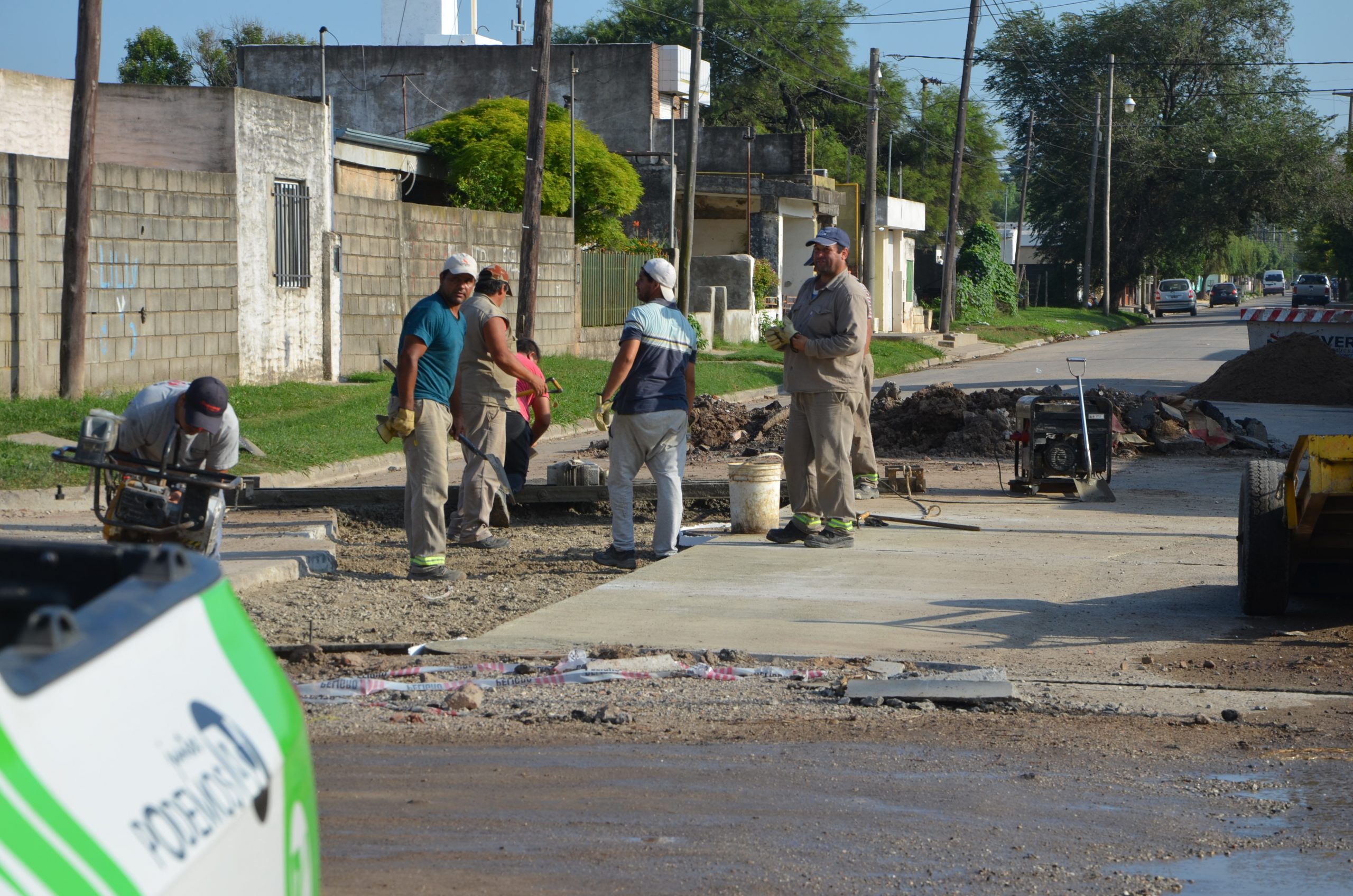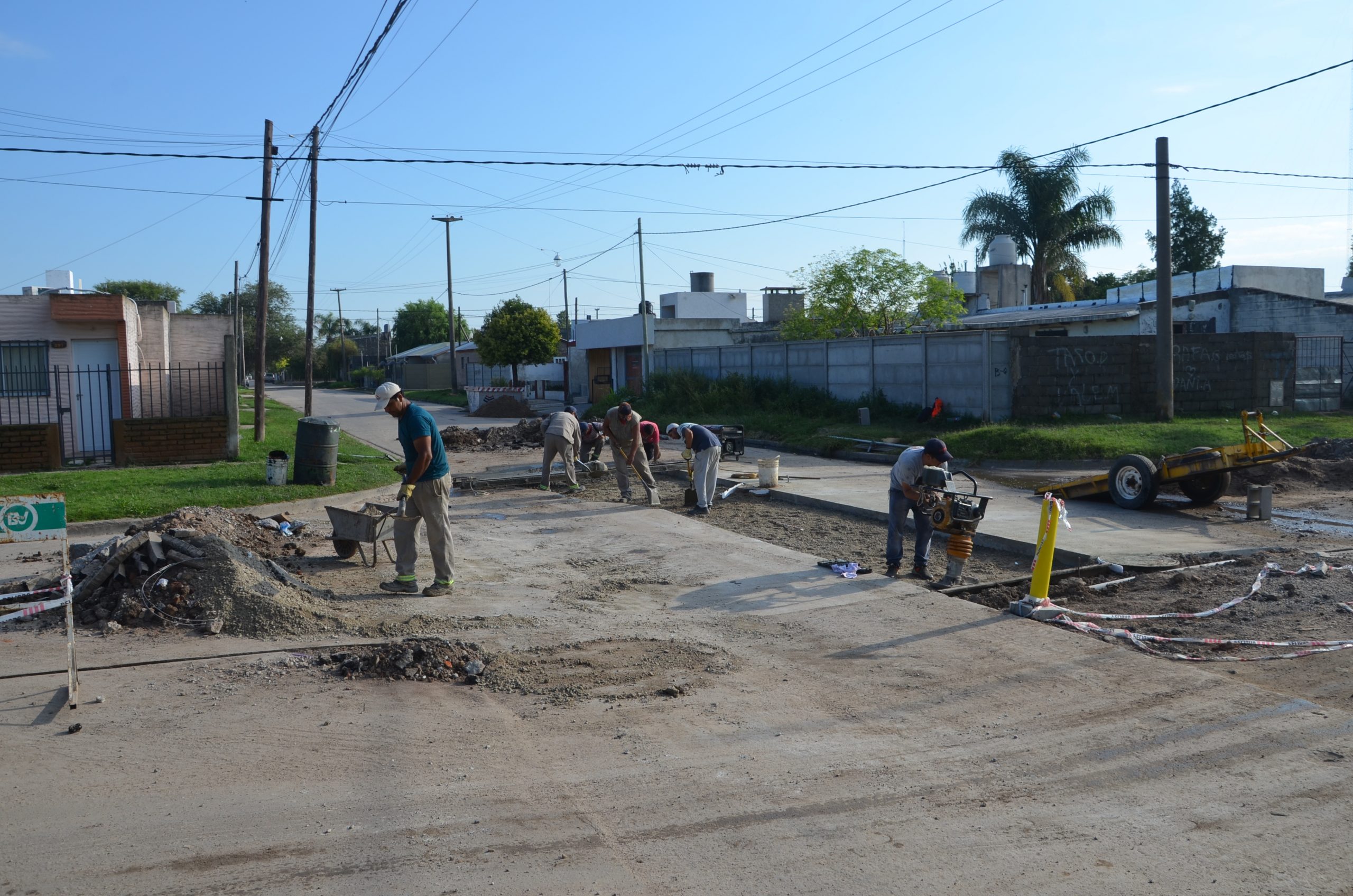 Se está procediendo al hormigonado de la bocacalle de bulevar Maipú y Constitución.