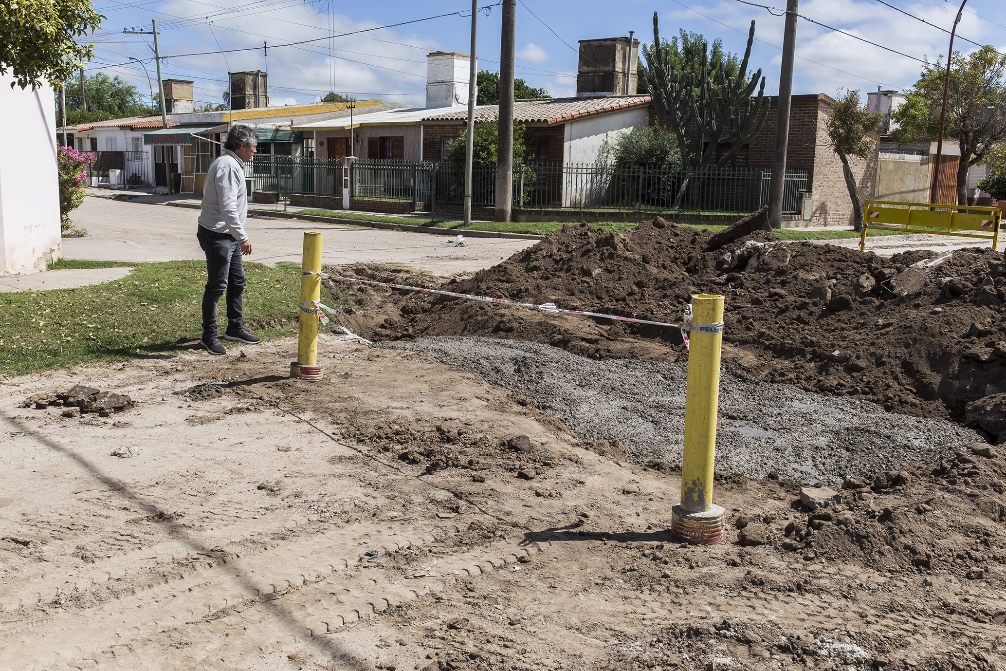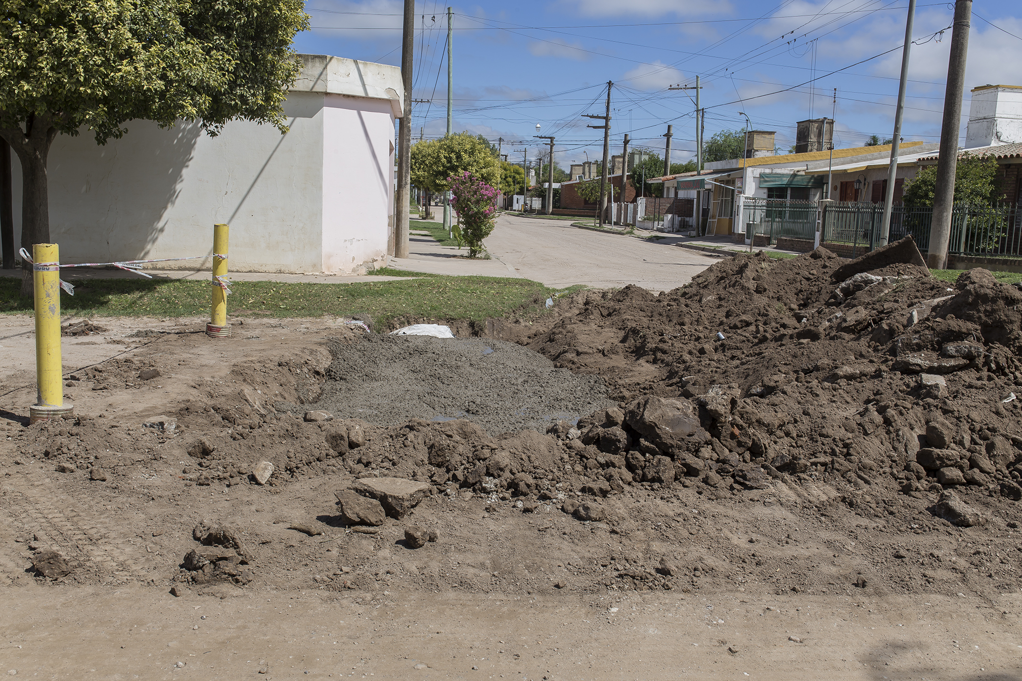 Se reemplazó parte del alcantarillado de calle Juan B. Justo y Perito Moreno. Un tramo del sistema se había roto, impidiendo la circulación del agua por el sector.