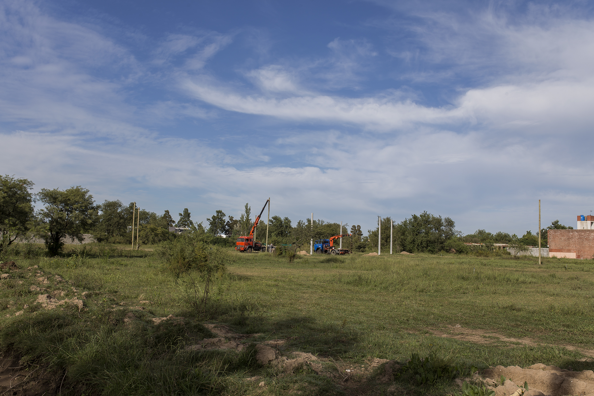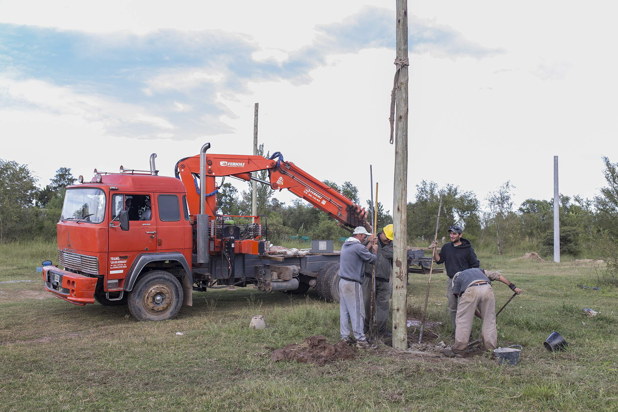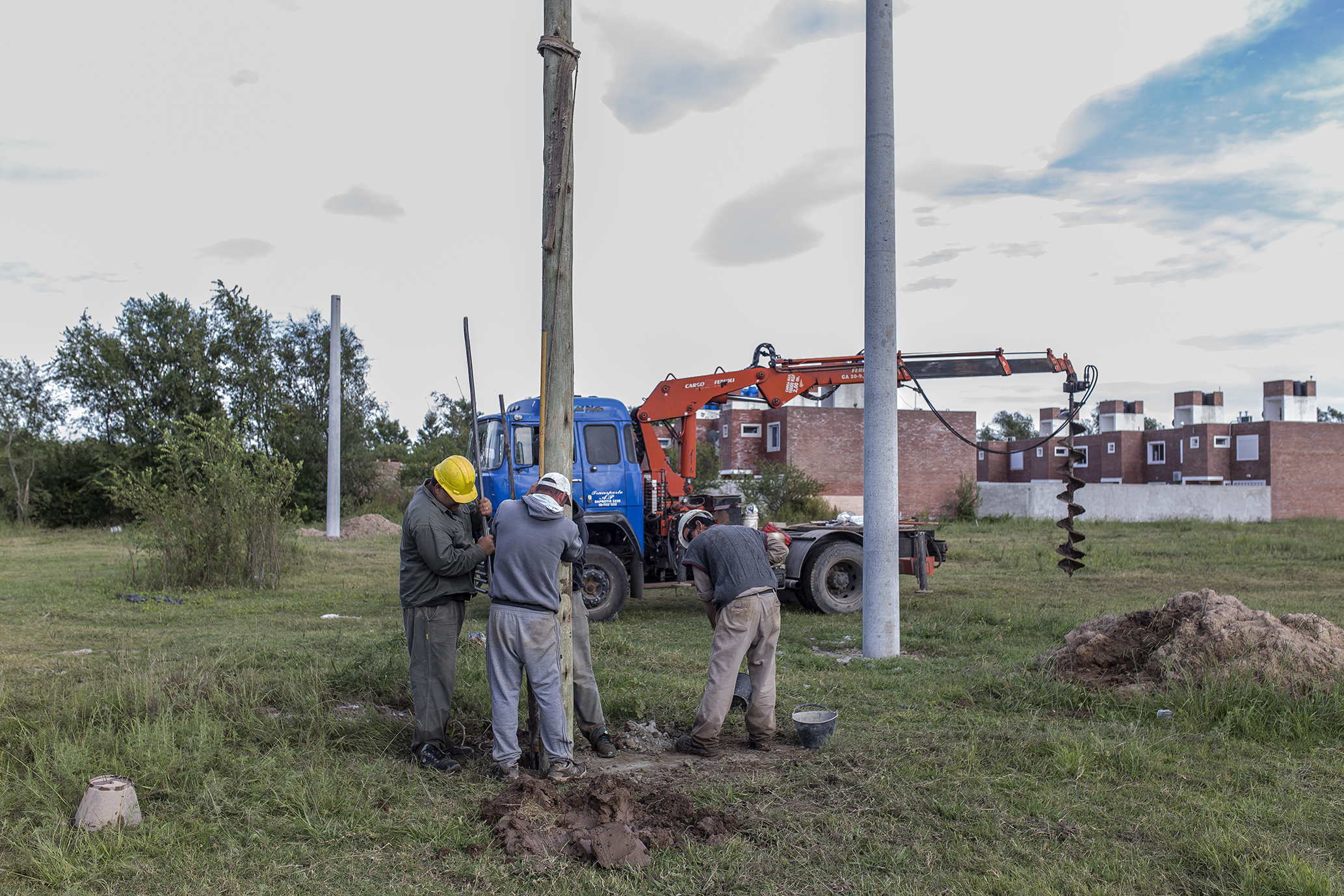 A buen ritmo prosigue la obra de colocación de columnas y posterior tendido eléctrico público y domiciliario en el loteo municipal ubicado en el predio de calles Ombú y Constitución.