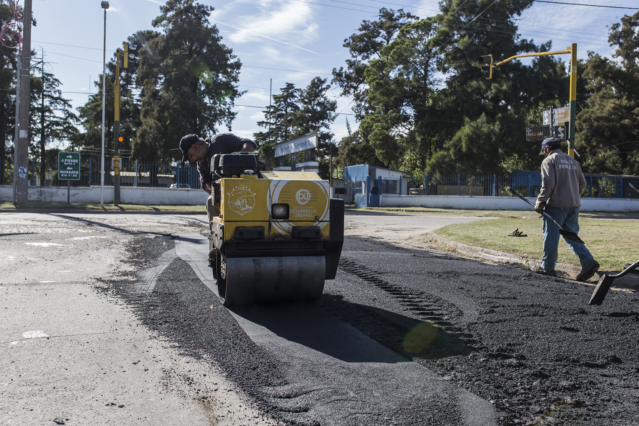Aprovechando el trabajo en la zona de avenida Faustino Molina, también se cumplió con el bacheo de asfalto en caliente en calle Ortiz Herrera.