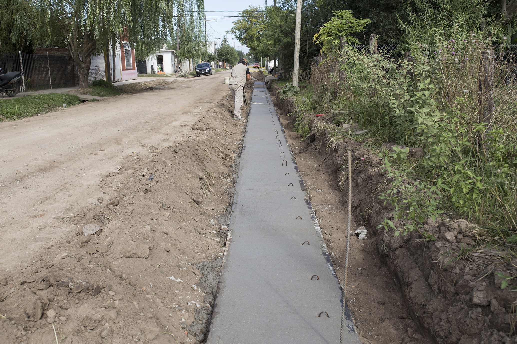 Buen ritmo en la obra de cordón cuneta de calle Chaco.