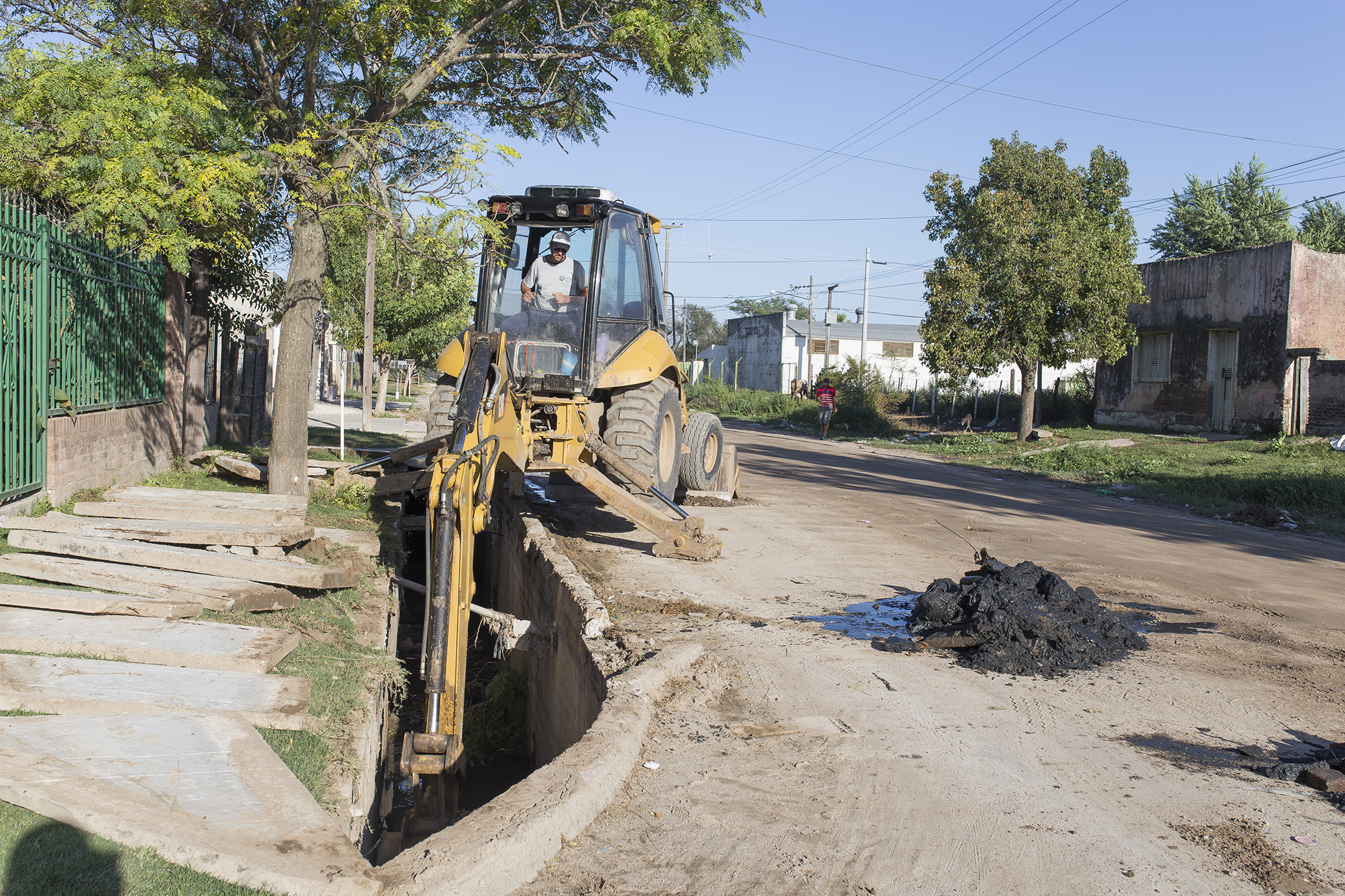 Se trabaja constantemente en la limpieza de canales de desagües. La tarea prosigue en el existente en bulevar Eva Perón del cual se extrae gran cantidad de basura y lodo.
