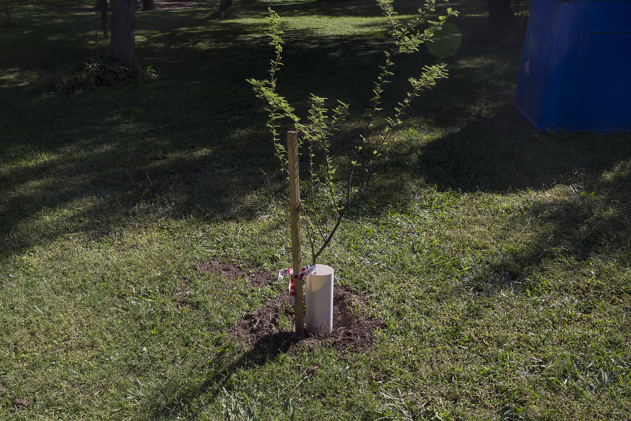 Cumpliendo el compromiso asumido en su momento en el inicio de la obra, la empresa contratada por el gobierno de la Provincia para la obra de engavionado de las barrancas del río Ctalamochita, comenzó con el plan de reforestación del Parque Tau, especialmente en la zona de intervención de las defensas.