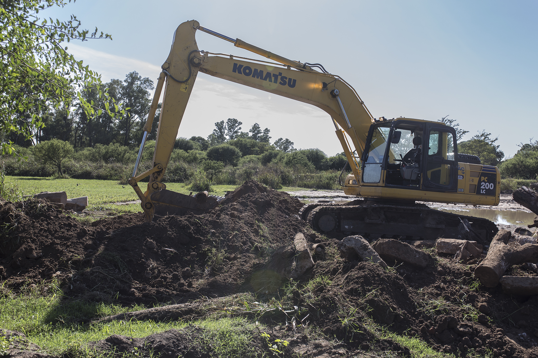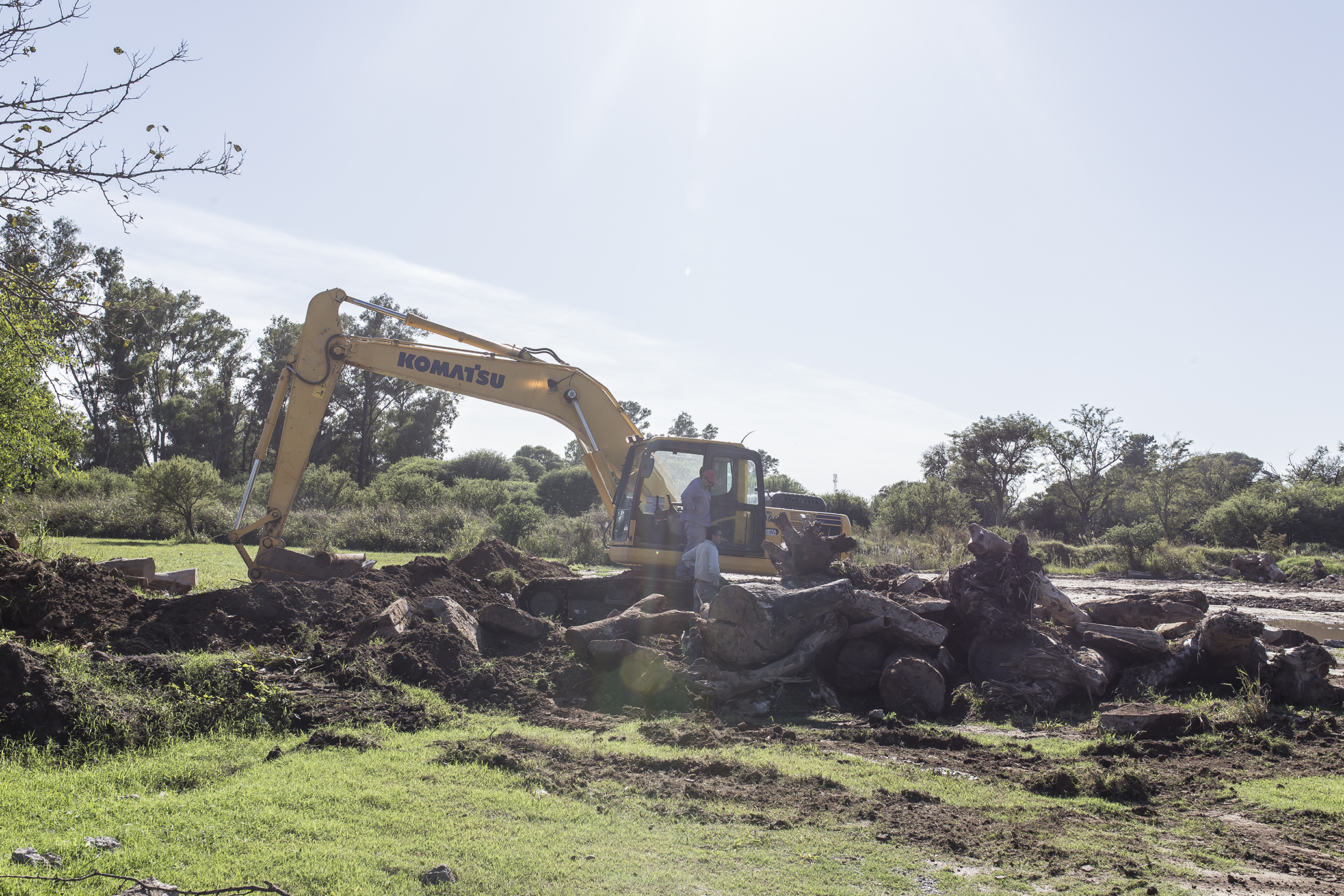 Paralelamente, maquinaria de la misma empresa reacondiciona el sector donde se trabajó para los gaviones para luego cumplir allí también con el plan de reforestación y recuperación arbórea de la reserva natural.
