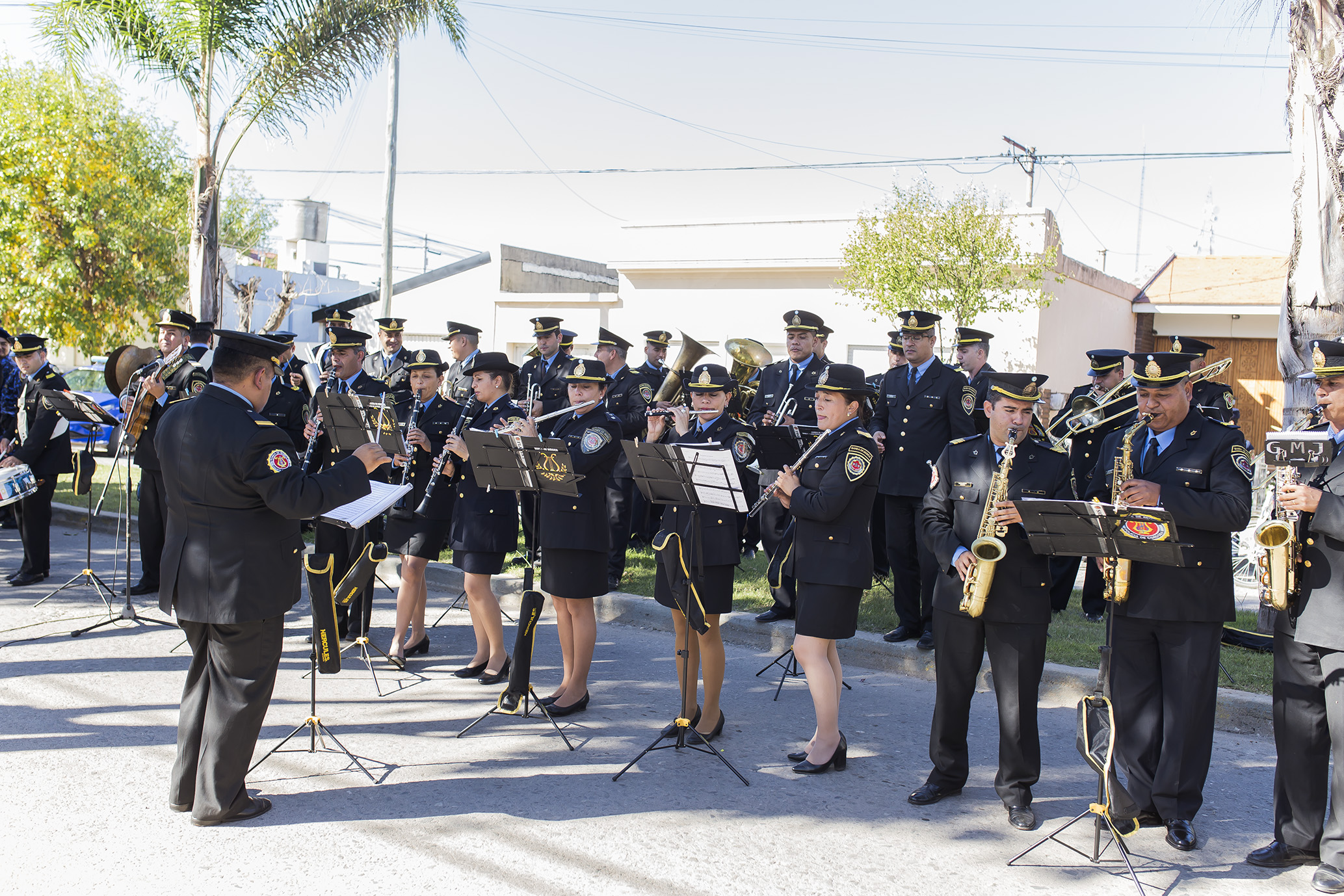 La Banda de Música de la Policía de la Provincia estuvo presente en la inauguración que comenzó con el Himno Nacional, siguiéndole la bendición de las remodeladas instalaciones y equipos de comunicación a cargo del capellán policial Pbro. Iván Lasagna.