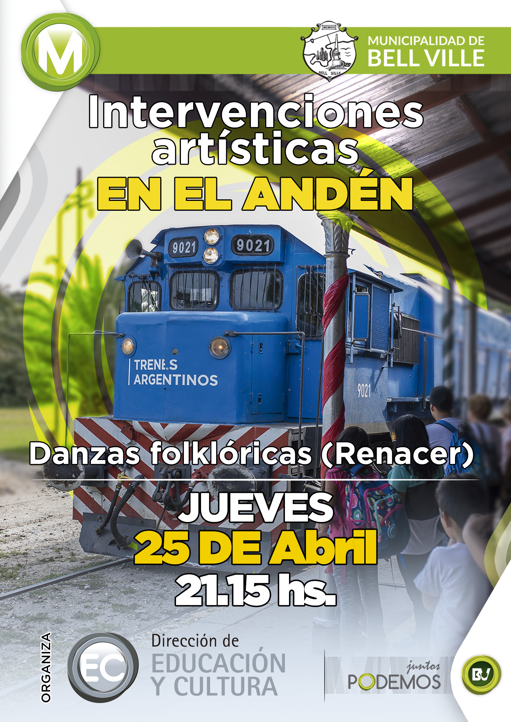 Se retoman las intervención artística en el andén de la Estación del Ferrocarril, en esta ocasión la actuación estará a cargo de los alumnos que participan del taller de folclore de adultos mayores “Renacer”, dictado en el Centro Educativo Cultural Municipal. La Dirección de Educación y Cultura Invita a toda la ciudadanía a asistir a este espectáculo.