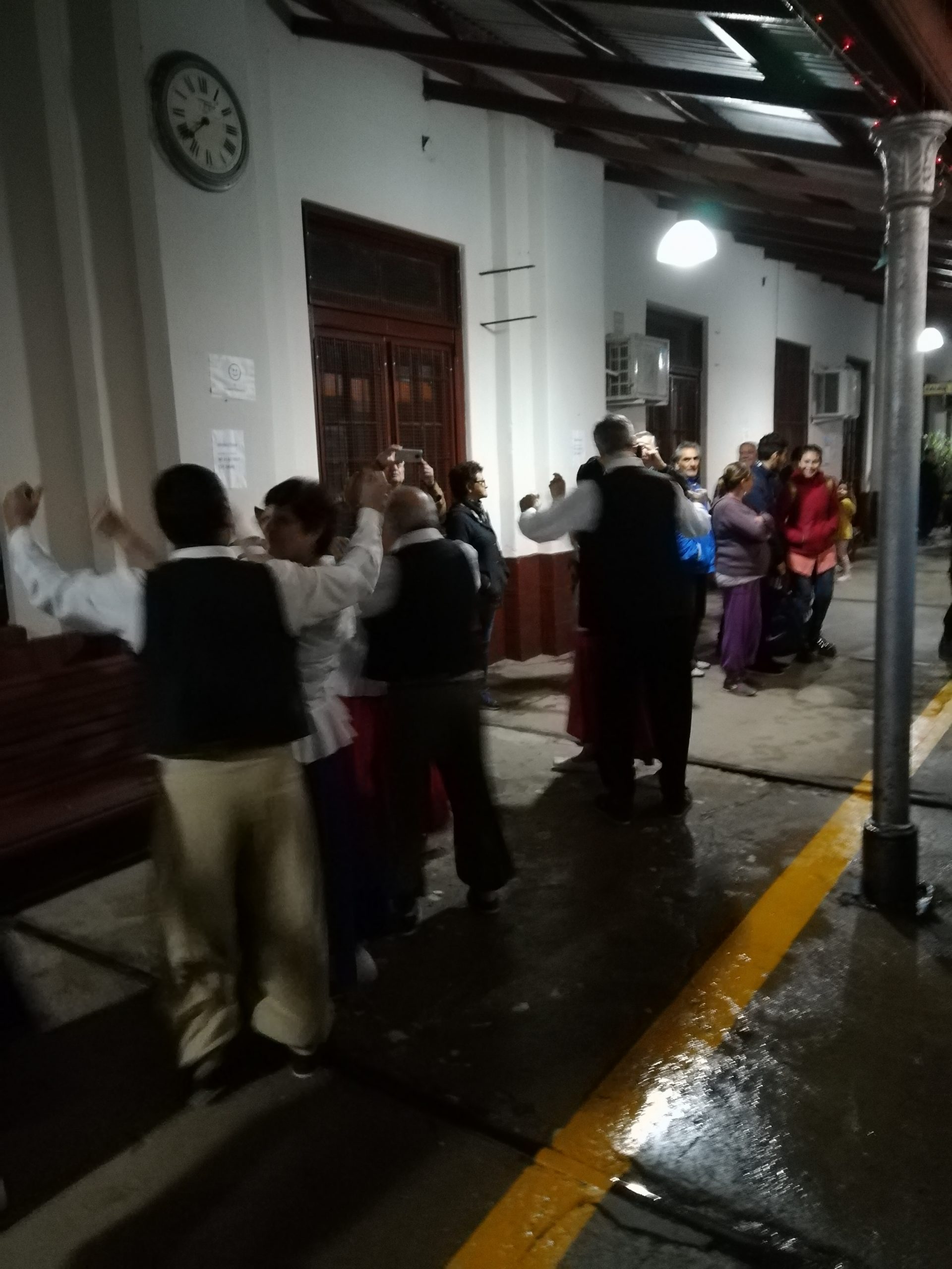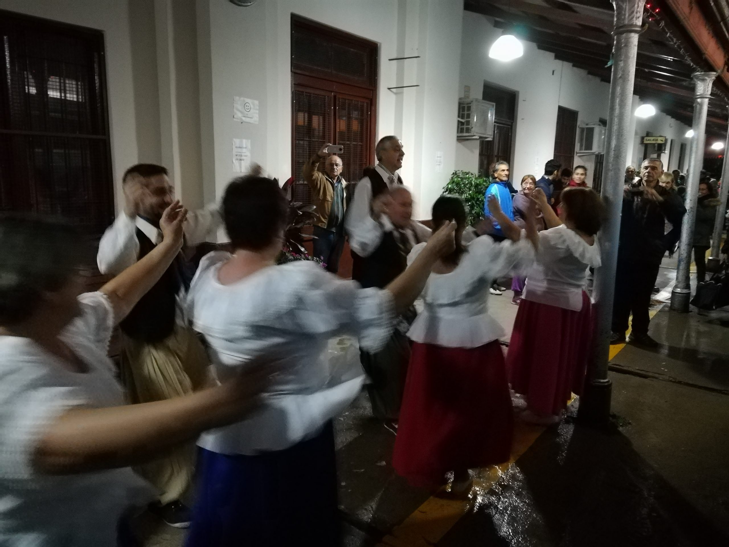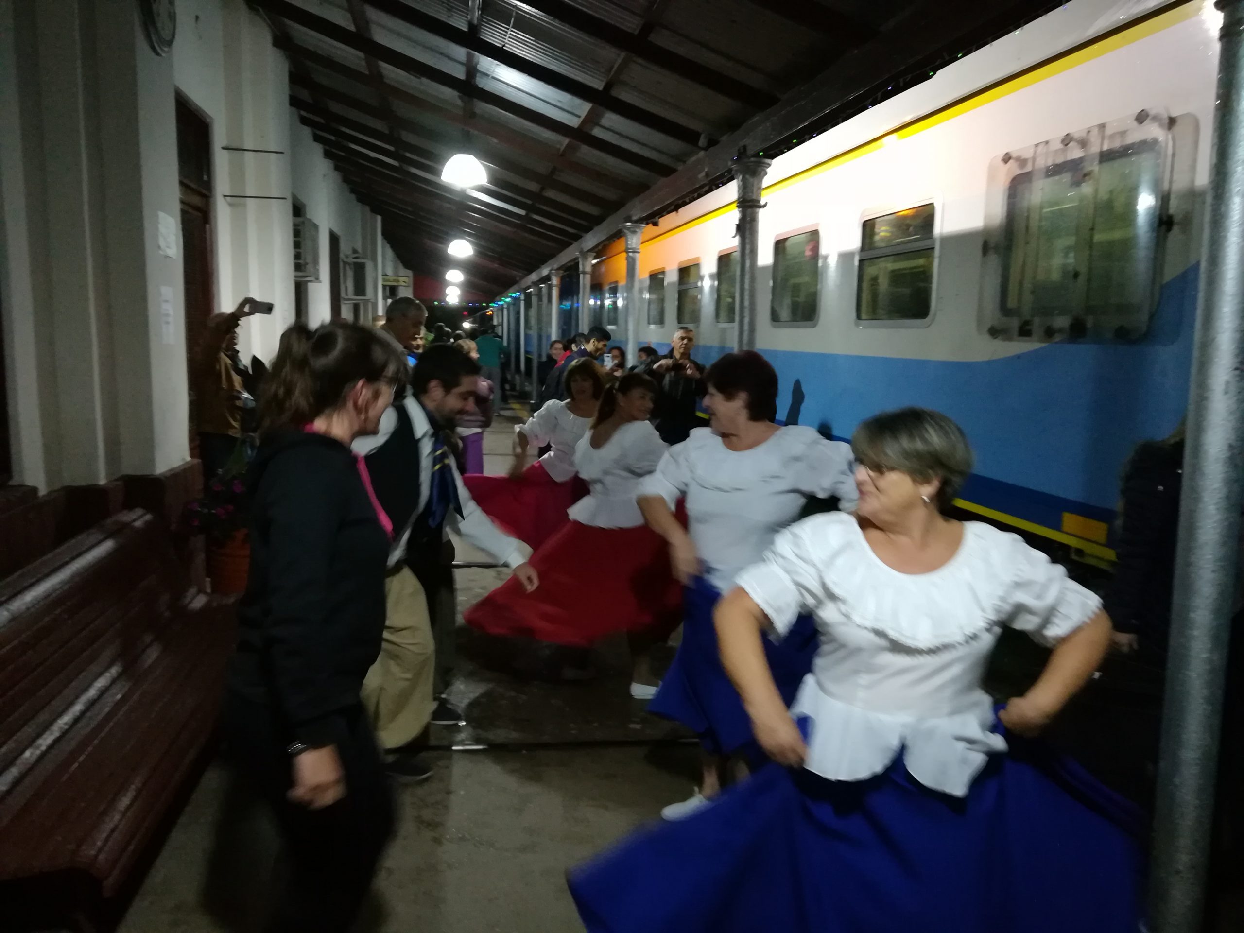 A la hora de llegada del tren a Bell Ville en la noche de ayer, una gran cantidad de pasajeros se vieron gratamente sorprendidos con la actuación de los alumnos del taller de folklore de adultos mayores “Renacer” que funciona en el Centro Cultural Municipal, quienes entre gatos y chacareras deleitaron a los presentes.