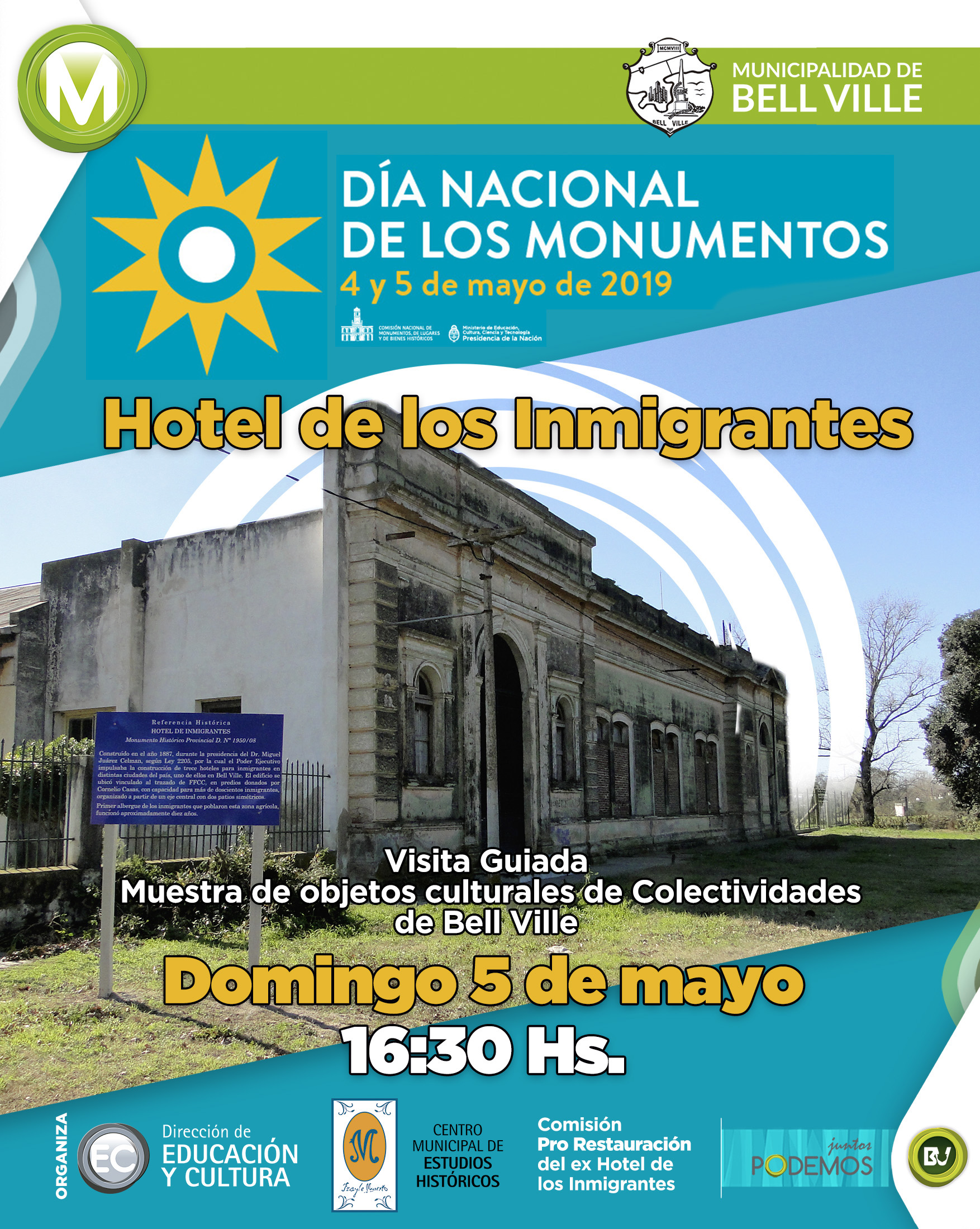 En este contexto, nuestra ciudad llevará adelante una serie de actividades alusivas a tal fecha durante el día domingo con la organización de la Dirección de Educación y Cultura y el Centro Municipal de Estudios Históricos de Bell Ville, y la adhesión de la Comisión Pro Restauración del ex Hotel de los Inmigrantes y la guardaparques Ing. Agr. Rebeca Quetglas.