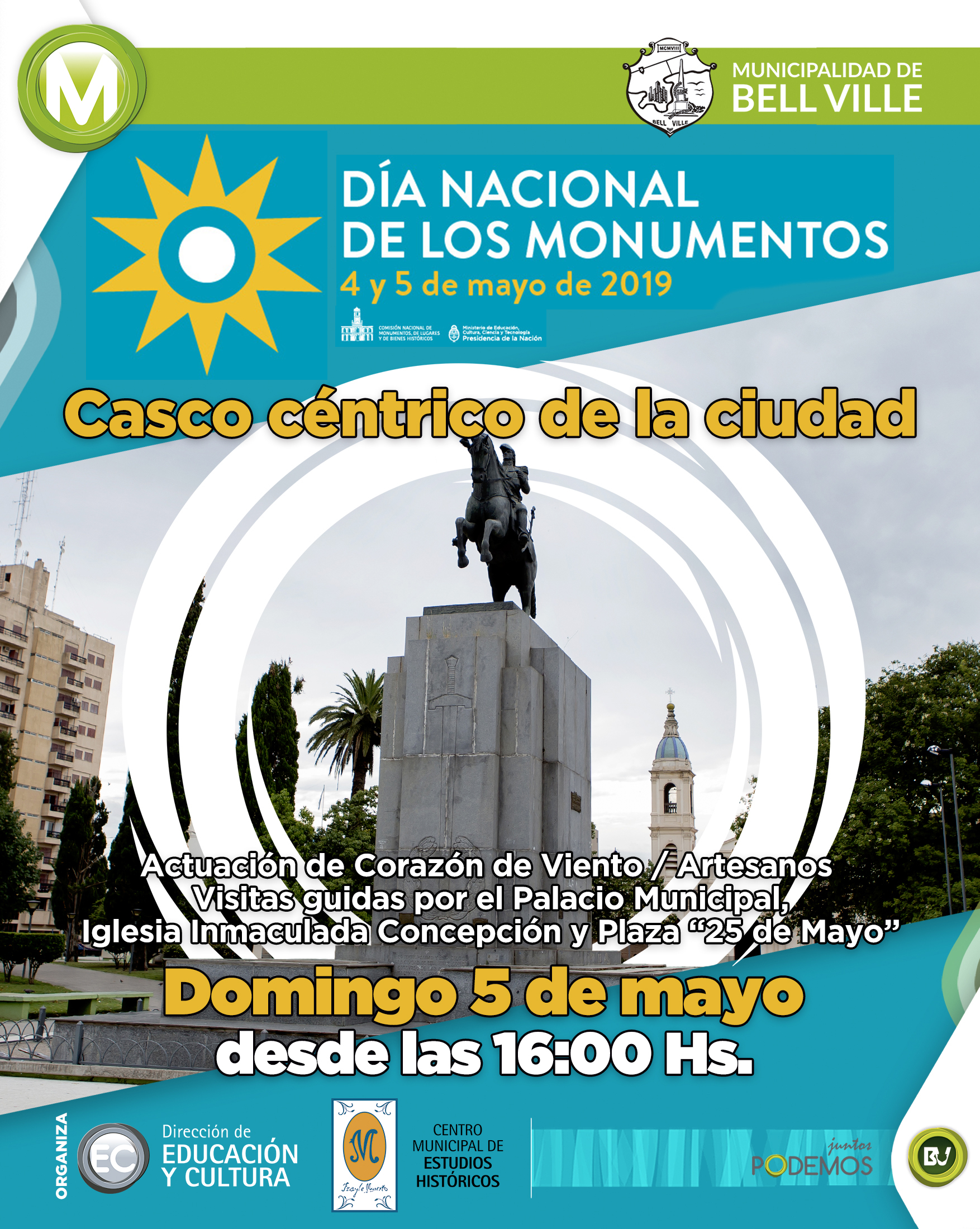 La jornada comenzará a la hora 16.00 con una visita guiada por el casco histórico de la ciudad, que tendrá como lugar de concentración el Palacio Municipal y seguirá en la Iglesia Inmaculada Concepción de María concluyendo en la Plaza 25 de Mayo, a lo que luego le seguirá un espectáculo musical a cargo de la Academia “Corazón de Viento”. También se encontrarán presentes los artesanos.
