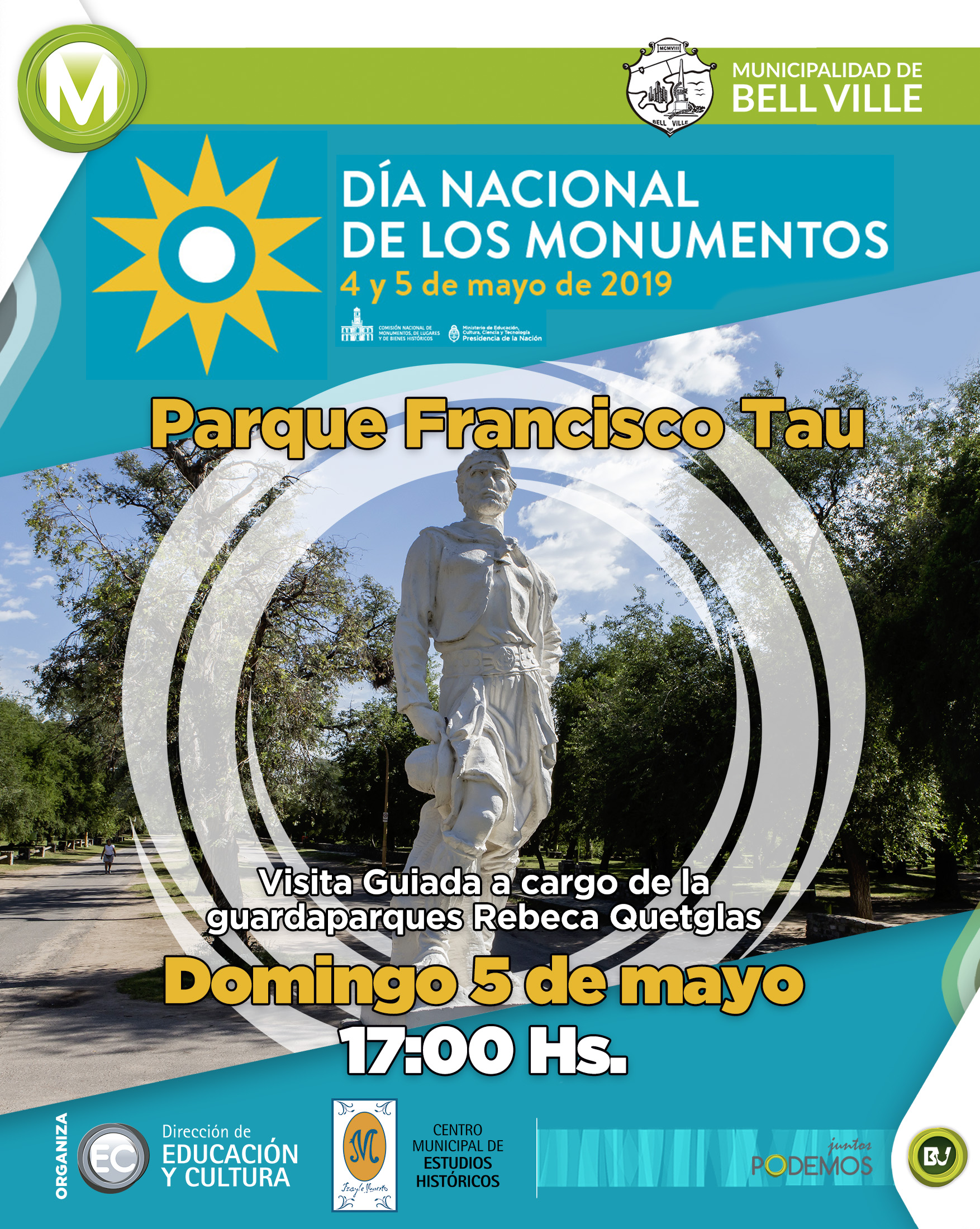 Mientras que a la hora 17.00, la guardaparque Ing. Agr. Rebeca Quetglas, realizará una visita guiada por el Parque Francisco Tau, teniendo al monumento al Gaucho como punto de partida.