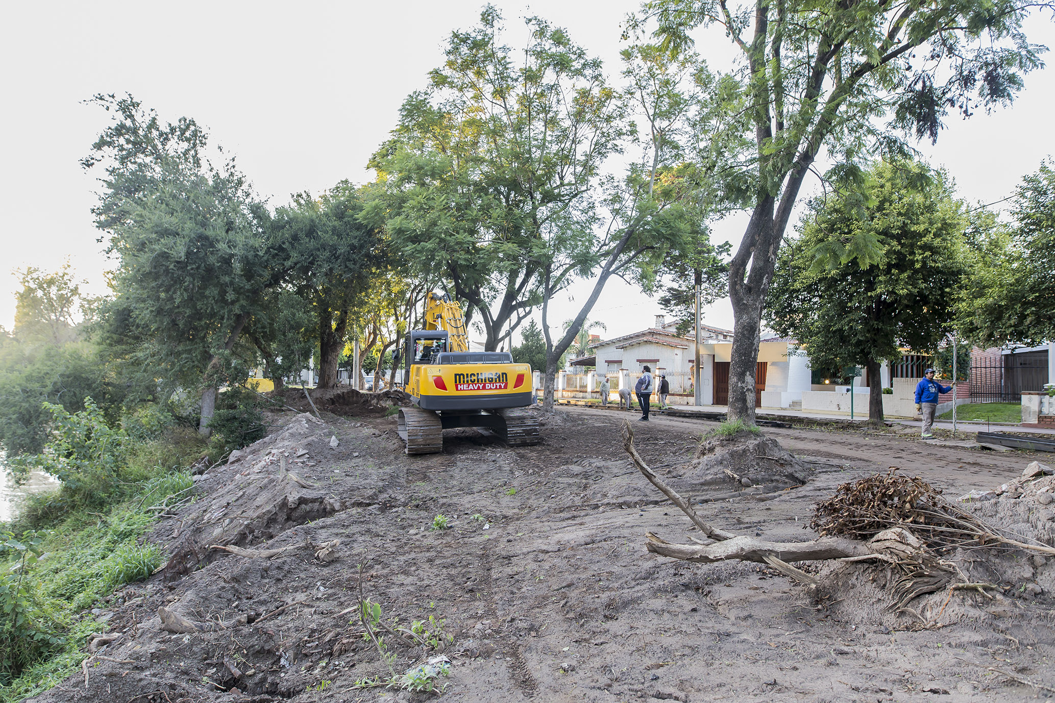Los trabajos estuvieron abocados al nivelado y compactación de suelo, preparando la zona para iniciar próximamente la construcción del cordón cuneta. Por otra parte, se procedió a la limpieza y rellenado de la barranca del río.