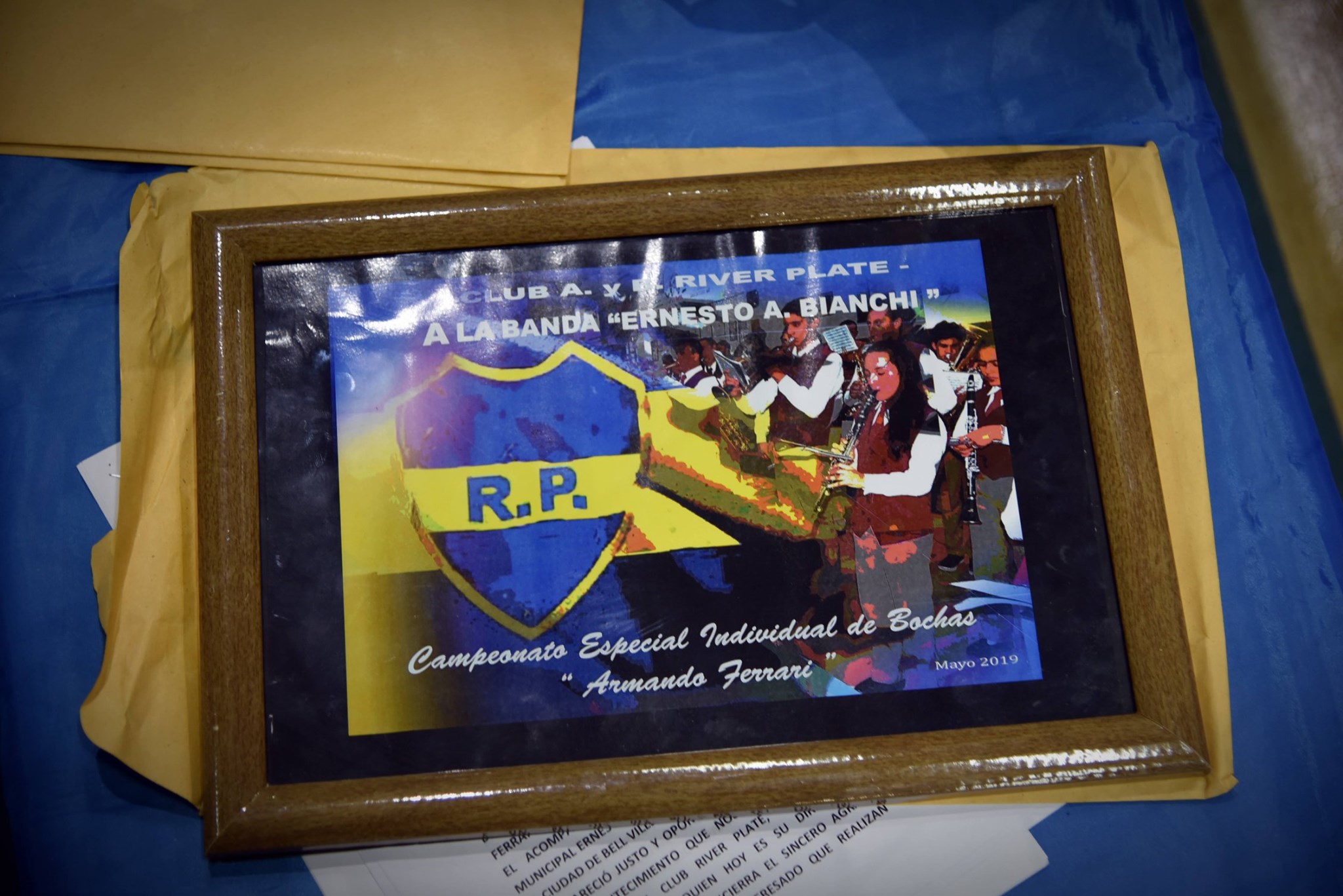 La tradicional fiesta bochófila tuvo en la primera jornada su siempre emotivo acto inaugural, con el acompañamiento municipal mediante la presencia del Director de Deportes, Lic. Daniel Pagliarone, y el Director de Salud Pública, Dr. Pablo Romero Delisa, junto a los aplaudidos compases musicales de la Banda Infantil Municipal “Ernesto A. Bianchi” dirigida por el Maestro Juan Ferreyra, quien en nombre de la entidad recibió una plaqueta en reconocimiento a la permanente presencia de la Banda realzando el evento.