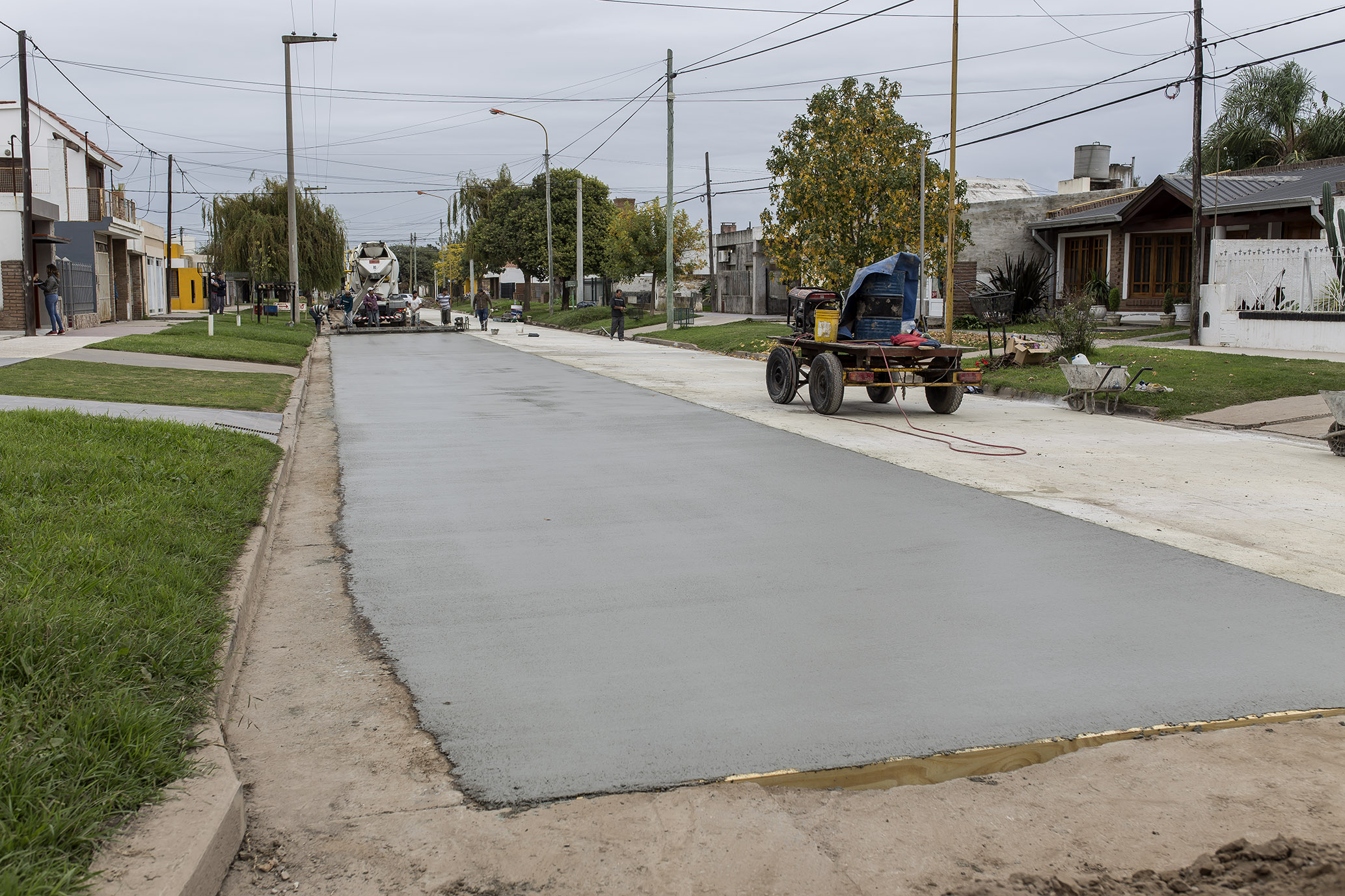 A buen ritmo prosigue el hormigonado en calle Córdoba al 1200, en el día de hoy se está completando el segundo paño de hormigón y el tomado de juntas. Paralelamente, se avanza con el compactando y nivelando la siguiente cuadra para proceder al mismo trabajo. De esta manera se está cumpliendo con un pedido de los vecinos del sector, mejorando lo que será el futuro acceso a Av. Circunvalación.
