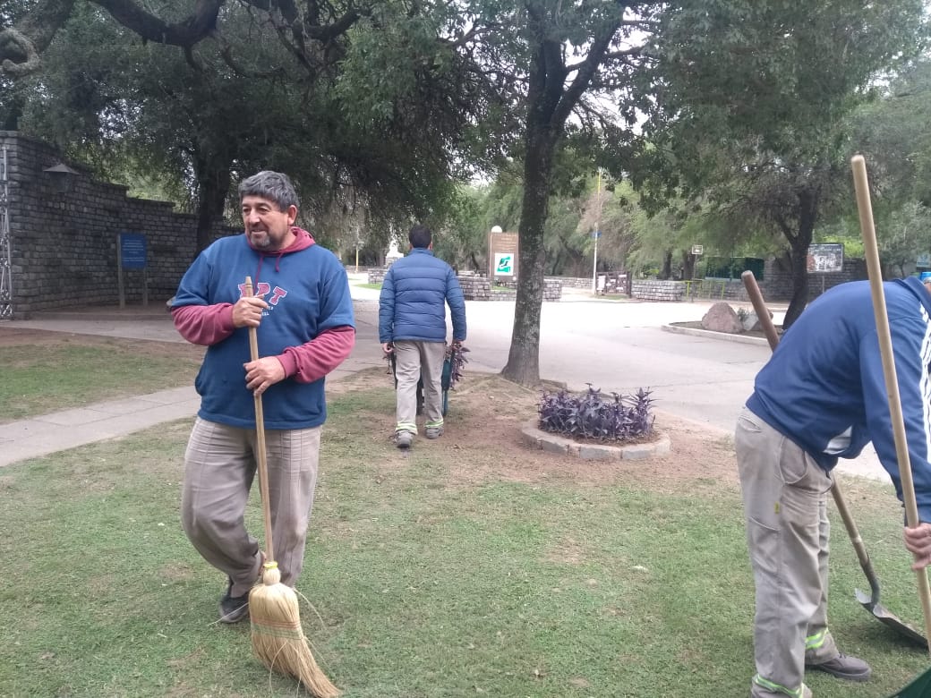 También el personal municipal cumplió con tareas de mantenimiento y resiembra manual de pasto de invierno en rotondas y espacios verdes públicos.
