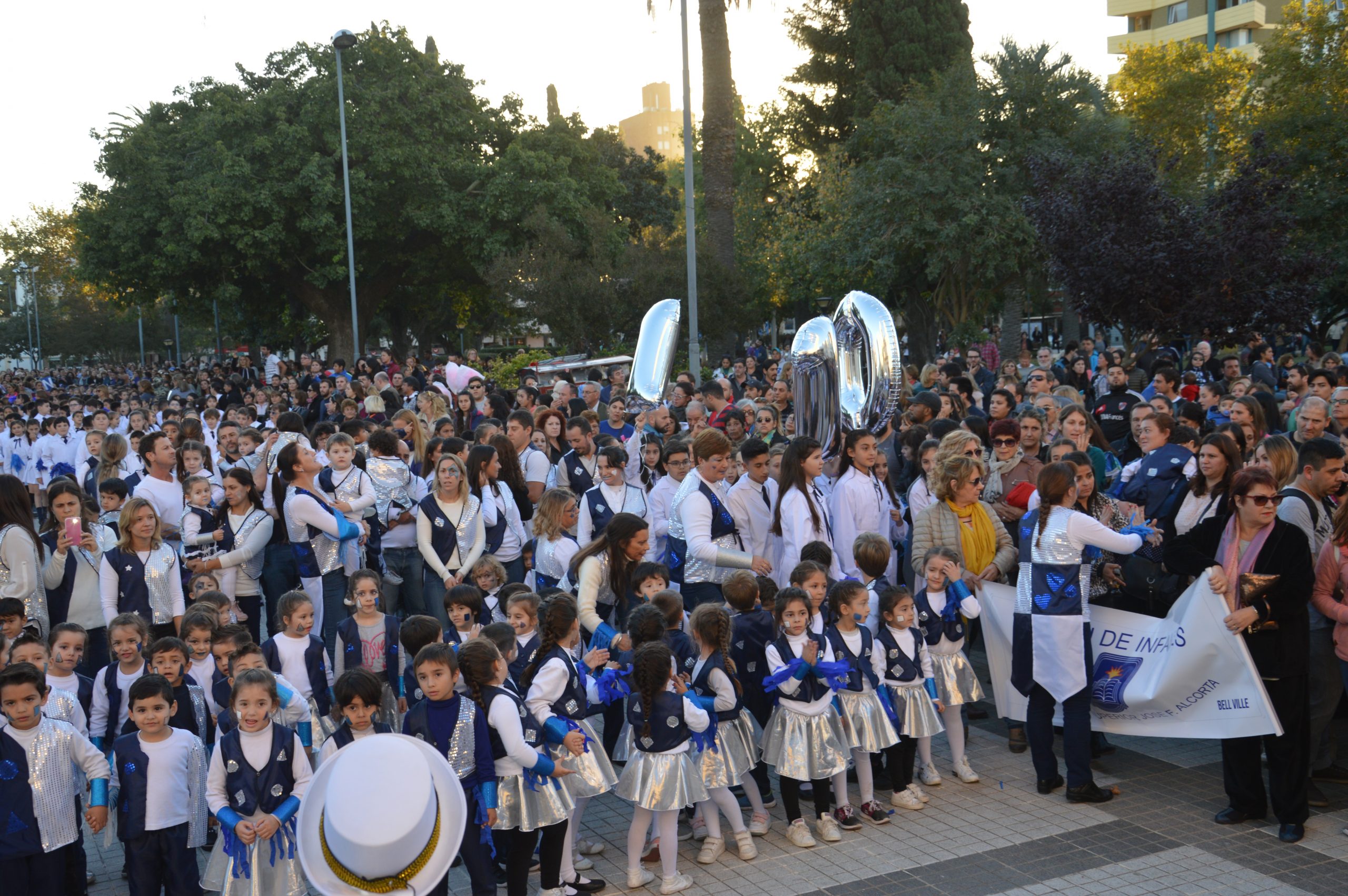 En plena plaza 25 de Mayo, frente a la iglesia Inmaculada Concepción, se cumplió la ceremonia luego que alrededor de 1.500 estudiantes de los cuatro niveles con los que cuenta el establecimiento educativo desfilaran por calle Córdoba, en compañía de sus docentes y con el marco musical de la Banda Municipal “Ernesto A. Bianchi” que dirige el maestro Juan Ferreyra.