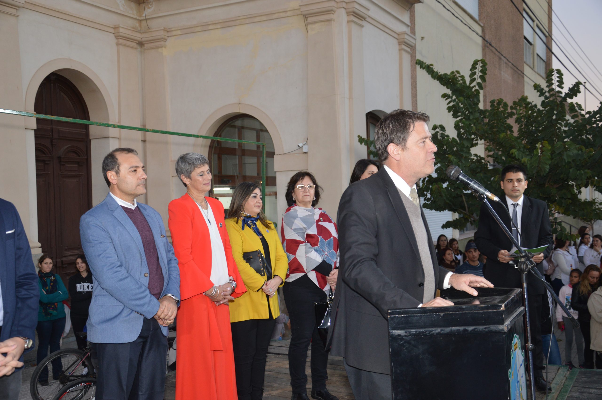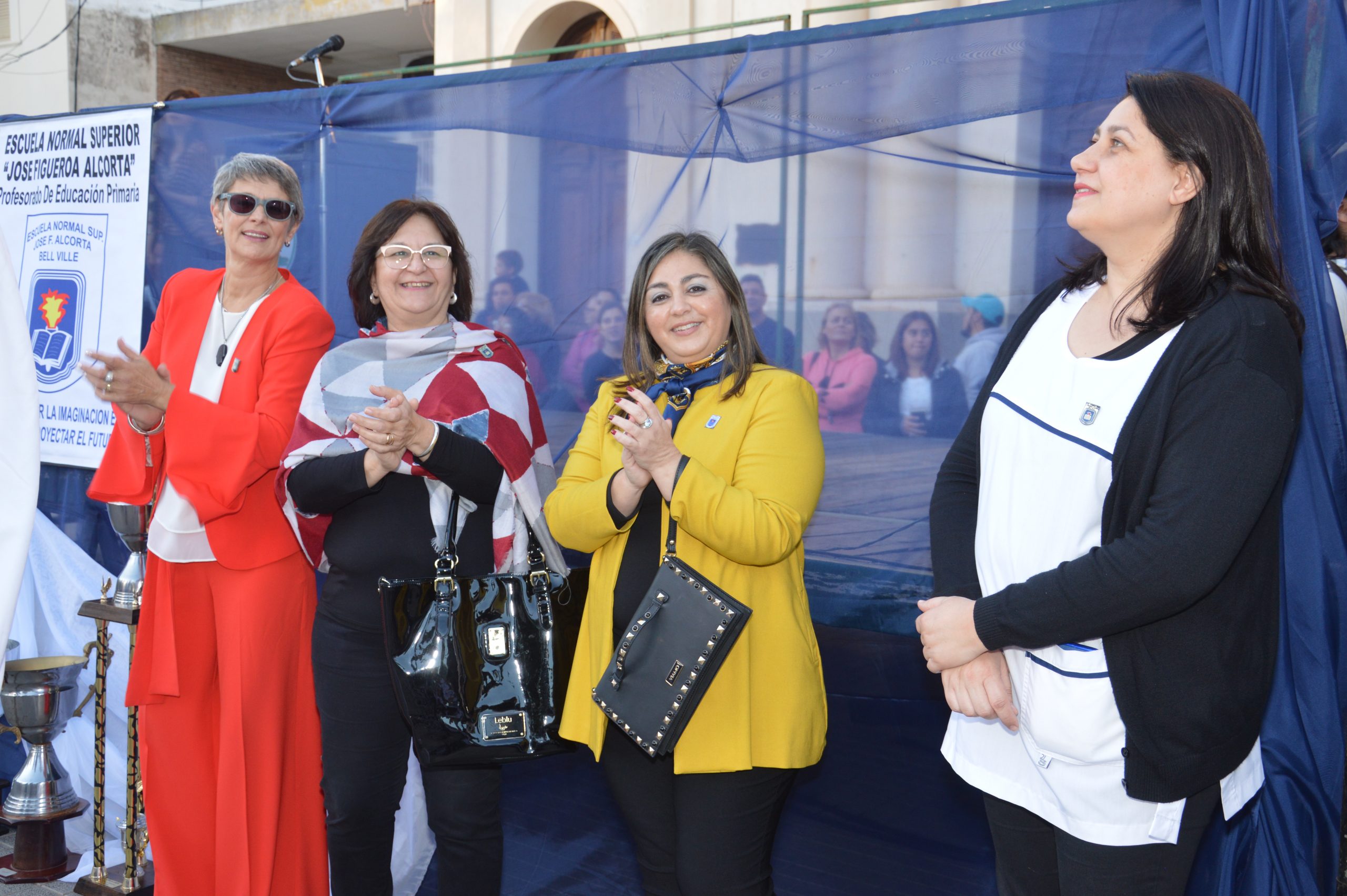 Precisamente el jefe municipal pidió honrar a la Escuela Normal “porque desde sus raíces creció fuerte” y destacó la figura del expresidente José Figueroa Alcorta y de su esposa, la bellvillense Josefa Bouquet Roldán.