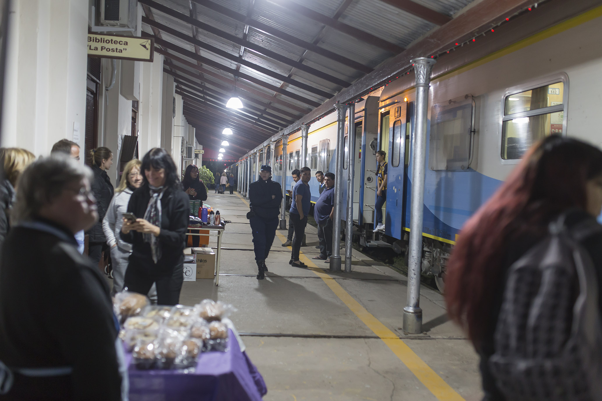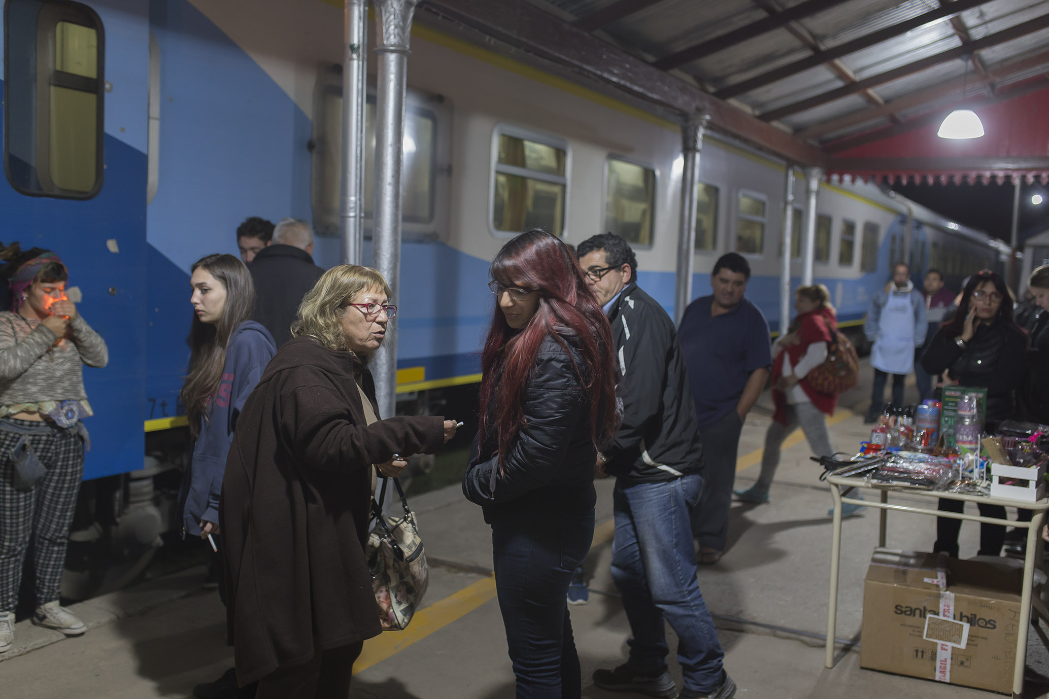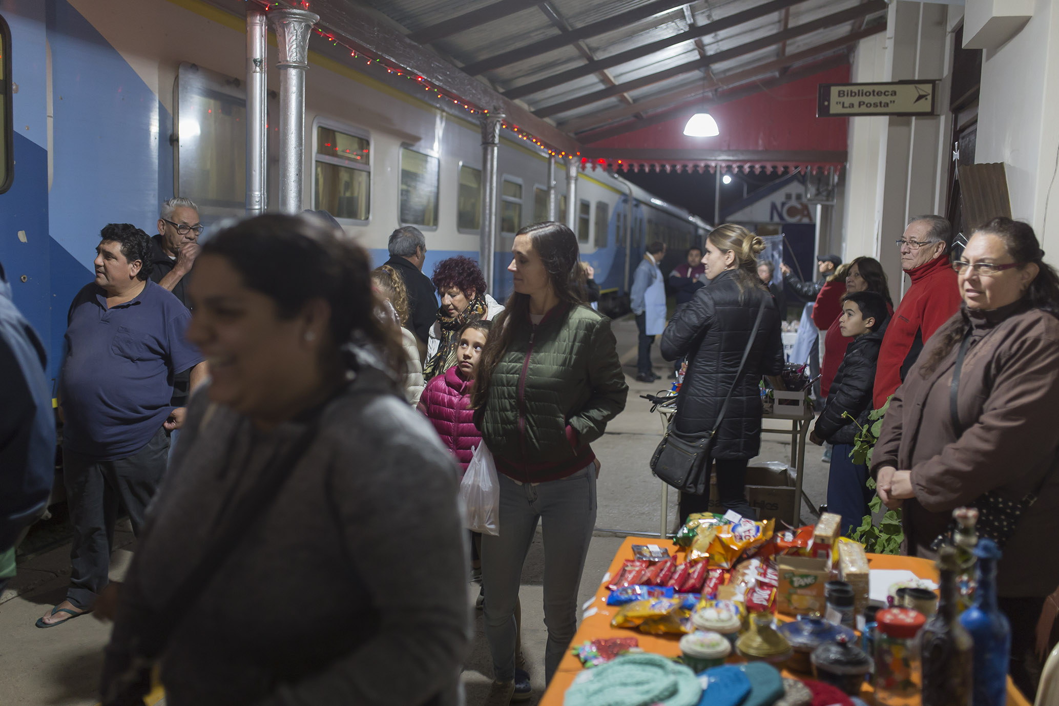 Por iniciativa de la responsable del municipio en el lugar, Sra. Silvia Abbas, desde anoche artesanos y emprendedores locales e integrantes de la Panadería Manos Unidas-APAIEMM ofrecen sus productos a los viajeros que utilizan el servicio del ferrocarril.