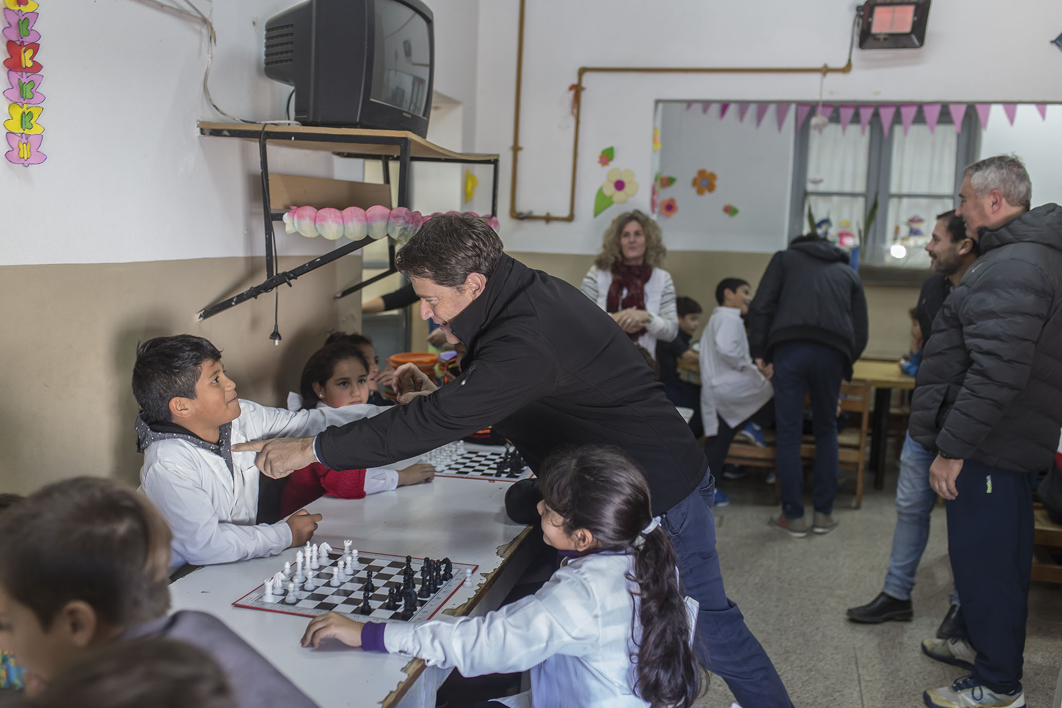 Autoridades municipales encabezadas por el intendente Dr. Carlos Briner, llevaron al citado establecimiento educativo la propuesta de un trabajo implementado por las áreas de Deportes y Centros Vecinales en diferentes puntos de la ciudad, valorando al aprendizaje y práctica del ajedrez por sus beneficios como probado vehículo de desarrollo cognitivo a edades tempranas.