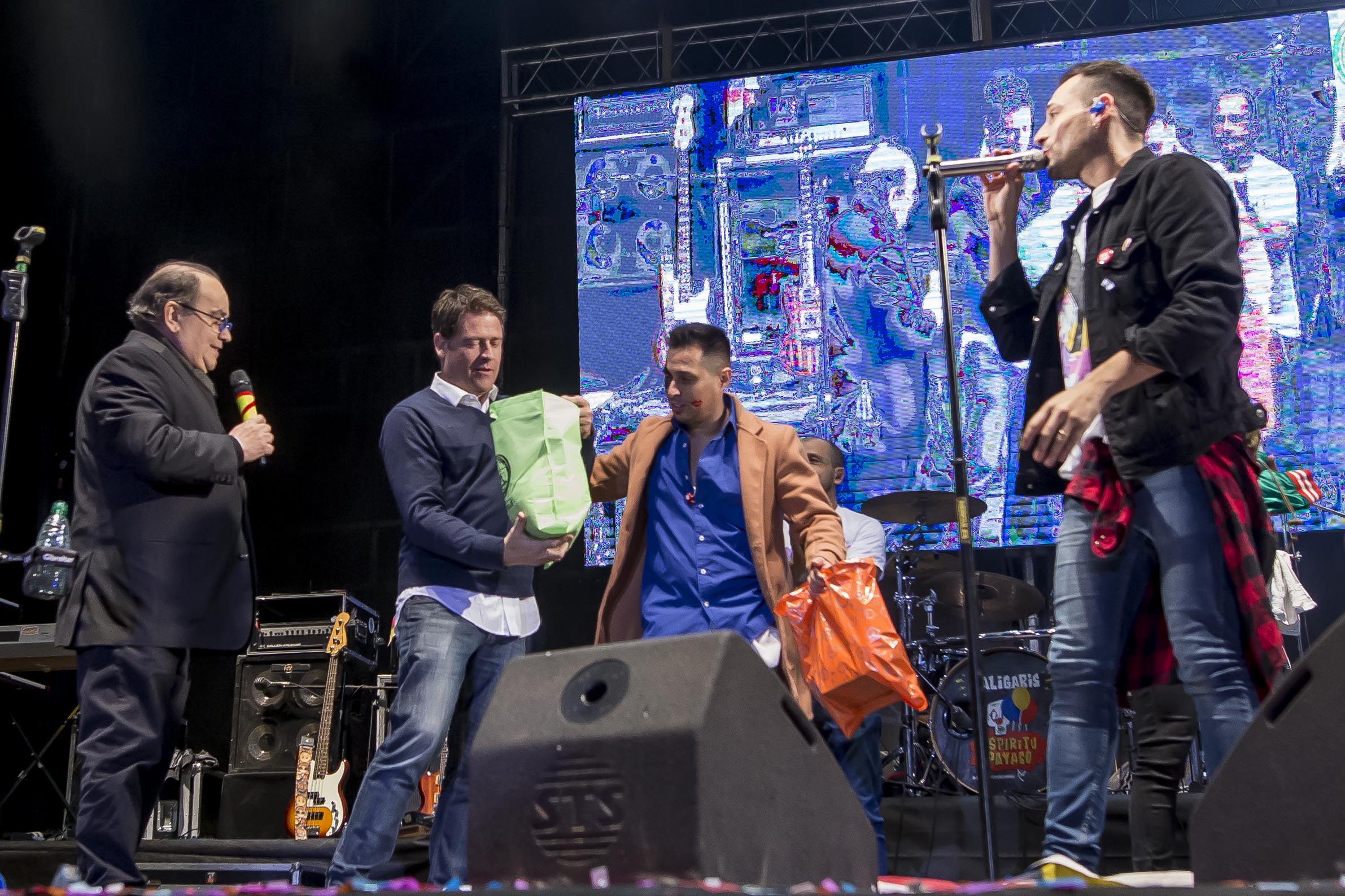 Artistas locales y Los Caligaris protagonizaron una gran fiesta en el centro de la ciudad.