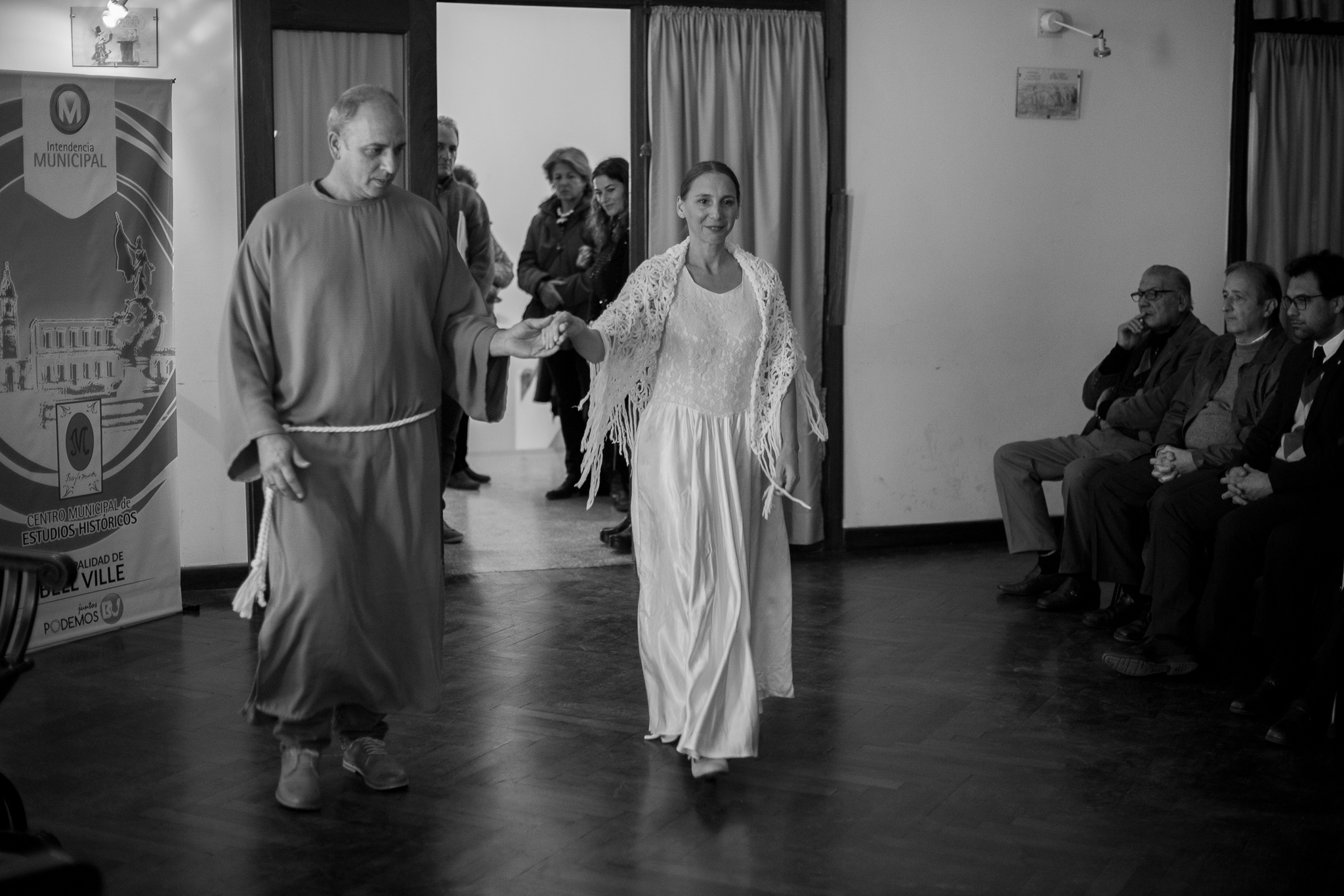 La actividad comenzó con una intervención del grupo “A puro teatro” a cargo de la Prof. Silvia Rodríguez en colaboración con la Prof. Raquel Viscovig, la cual estuvo centrada en dos personajes de la historia de Bell Ville, Fraile Muerto y Marcela de Mendoza, donde se hizo un trabajo de improvisación basado en textos de poesías de distintos autores, interpretados por los actores locales José Stuppa y Laura Salini.