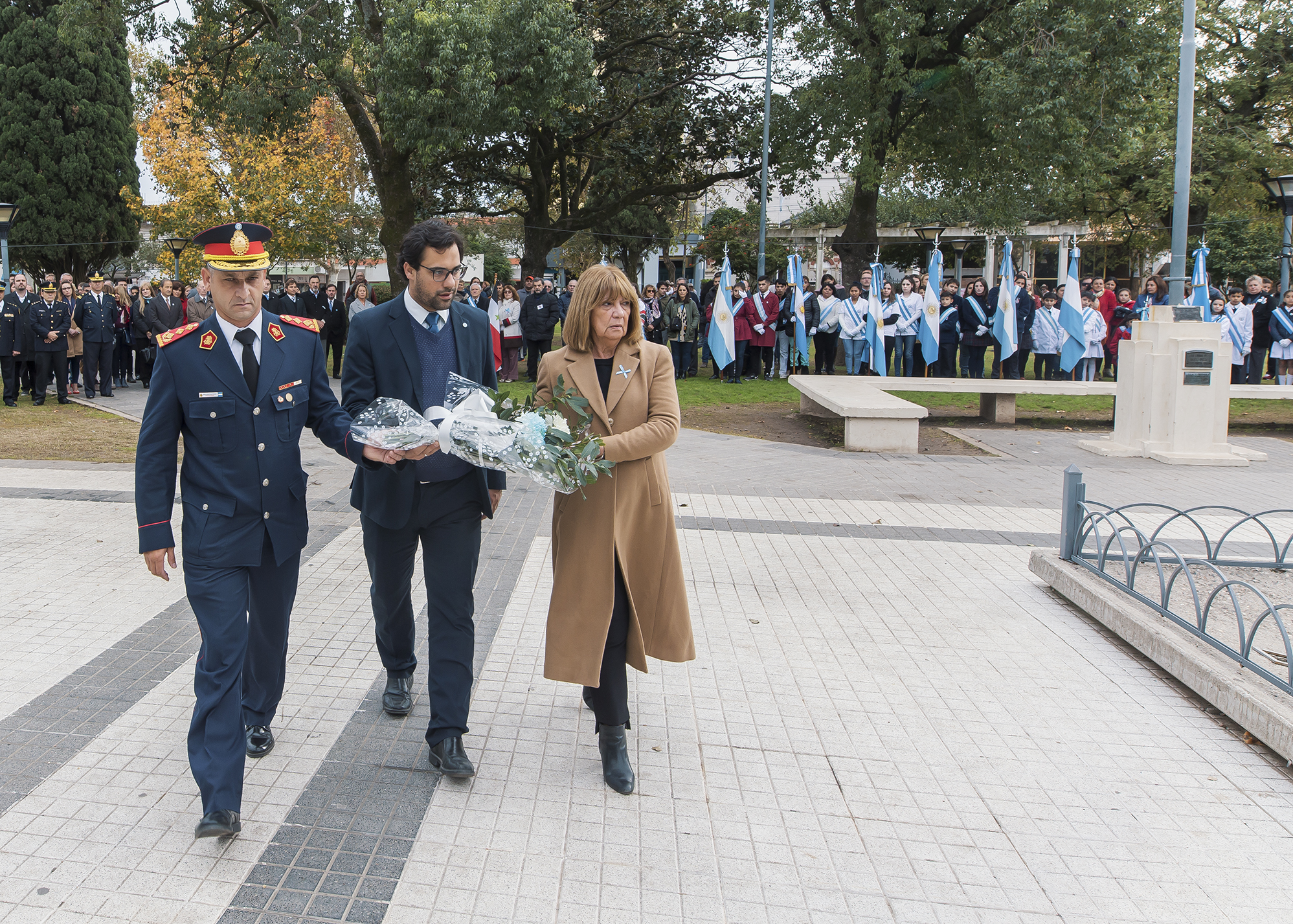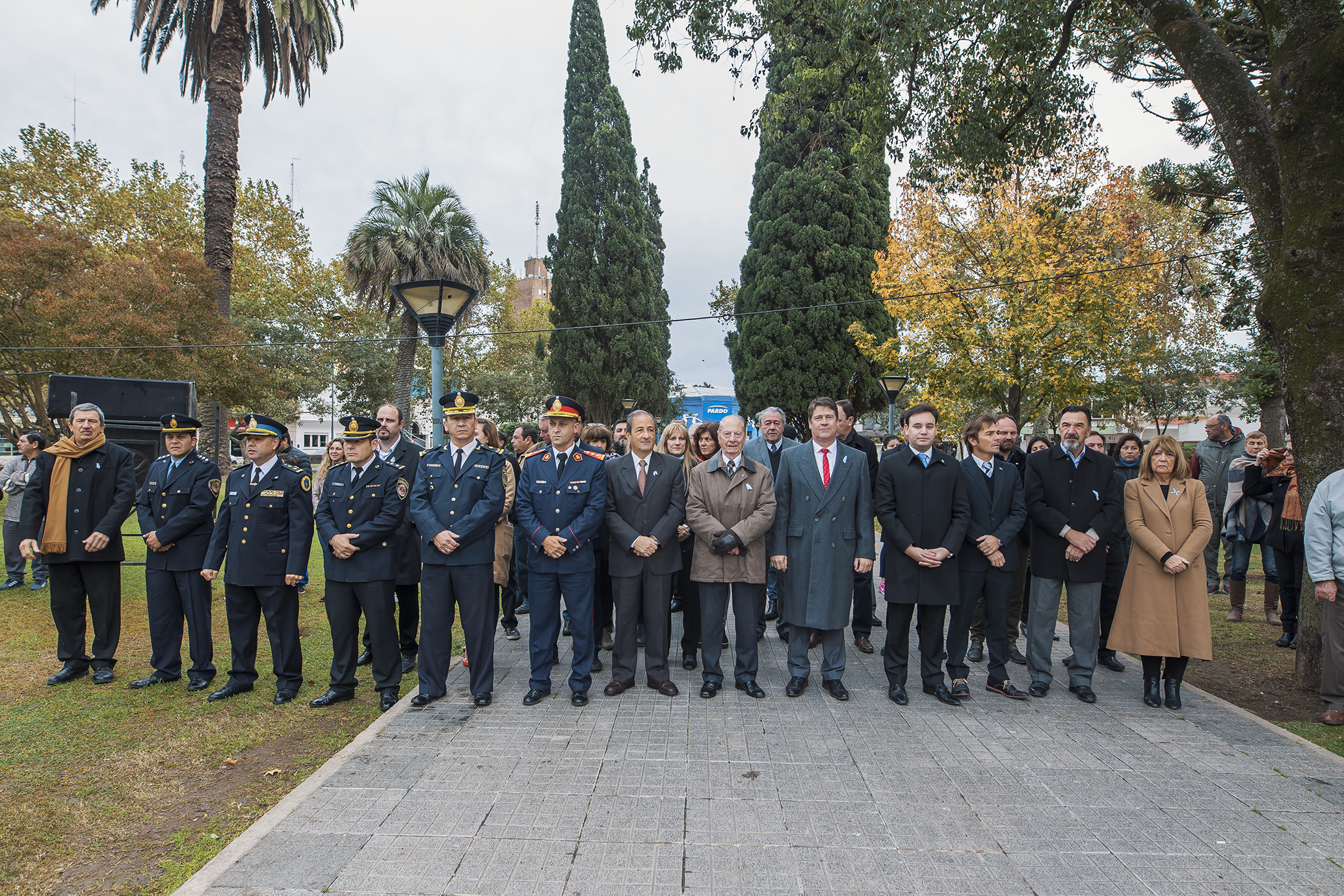 Participaron funcionarios municipales encabezados por el intendente, Dr. Carlos Briner; la legisladora provincial Prof. Carmen Ceballos; el presidente del Concejo Deliberante, Dr. Ernesto Gavier, concejales, tribunos de cuentas; representantes de la Justicia federal y provincial; jefes de las Policías federal y de la provincia; bomberos voluntarios; abanderados, escoltas y docentes de establecimientos educativos, representantes de instituciones del medio, invitados especiales y numerosos vecinos.