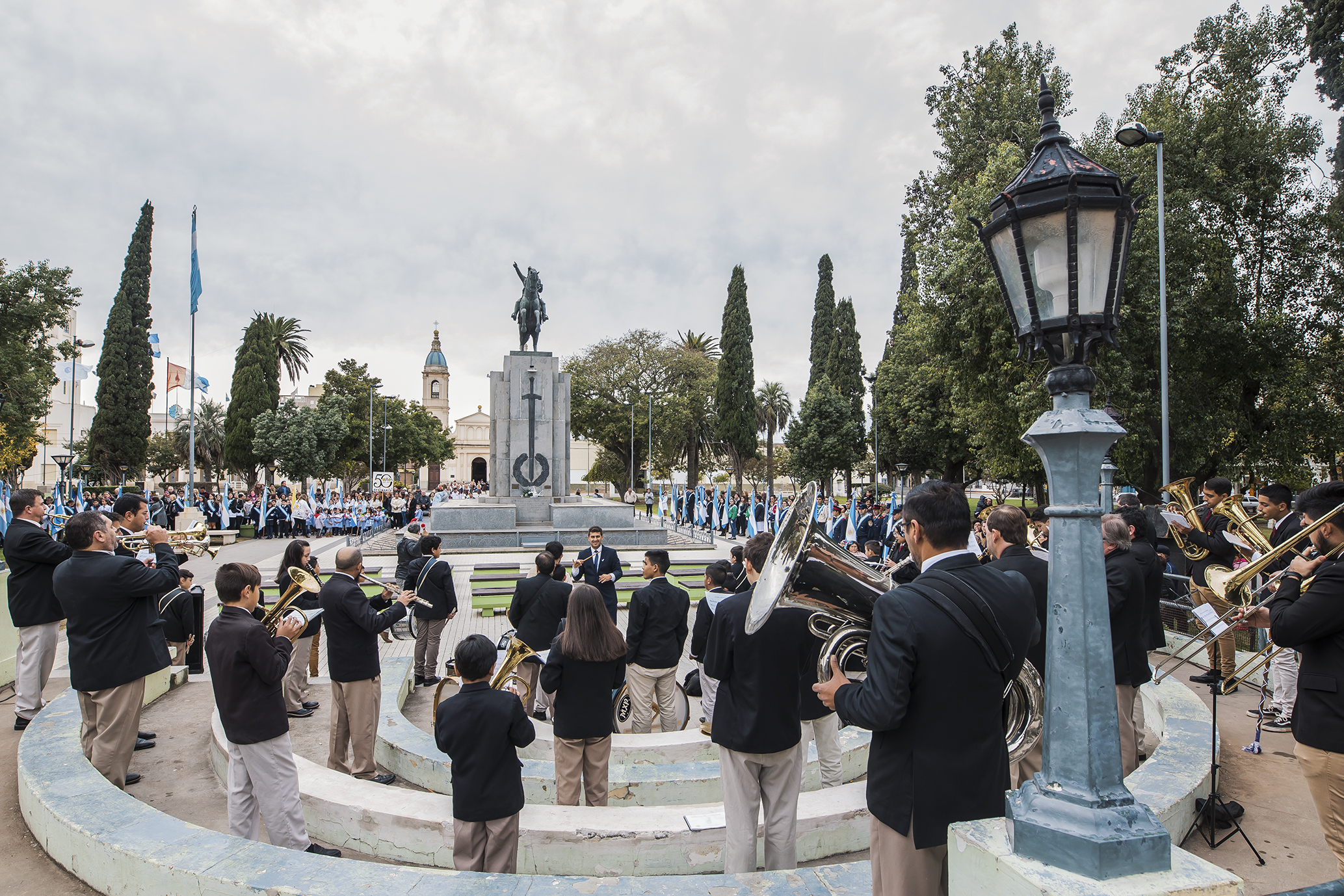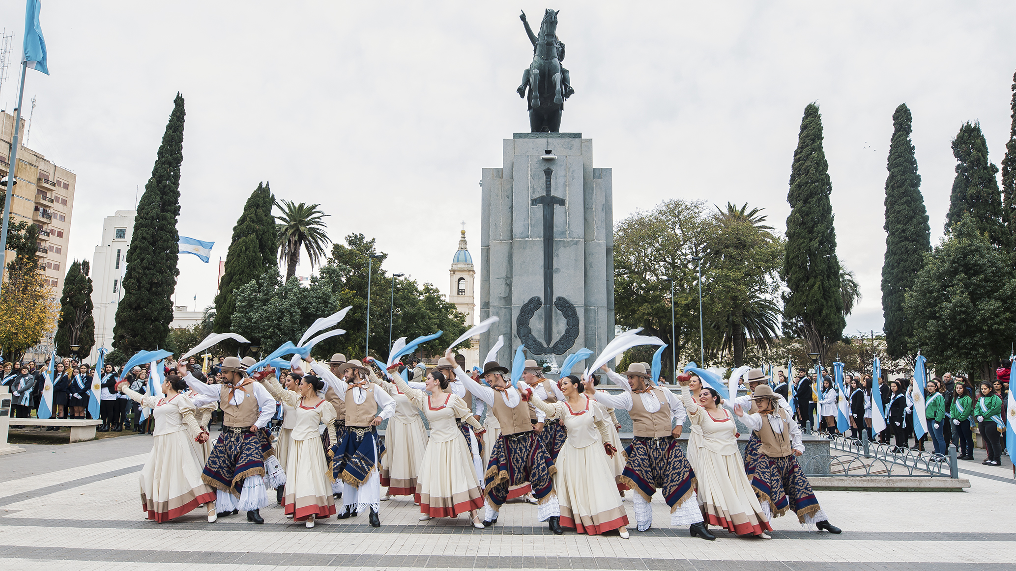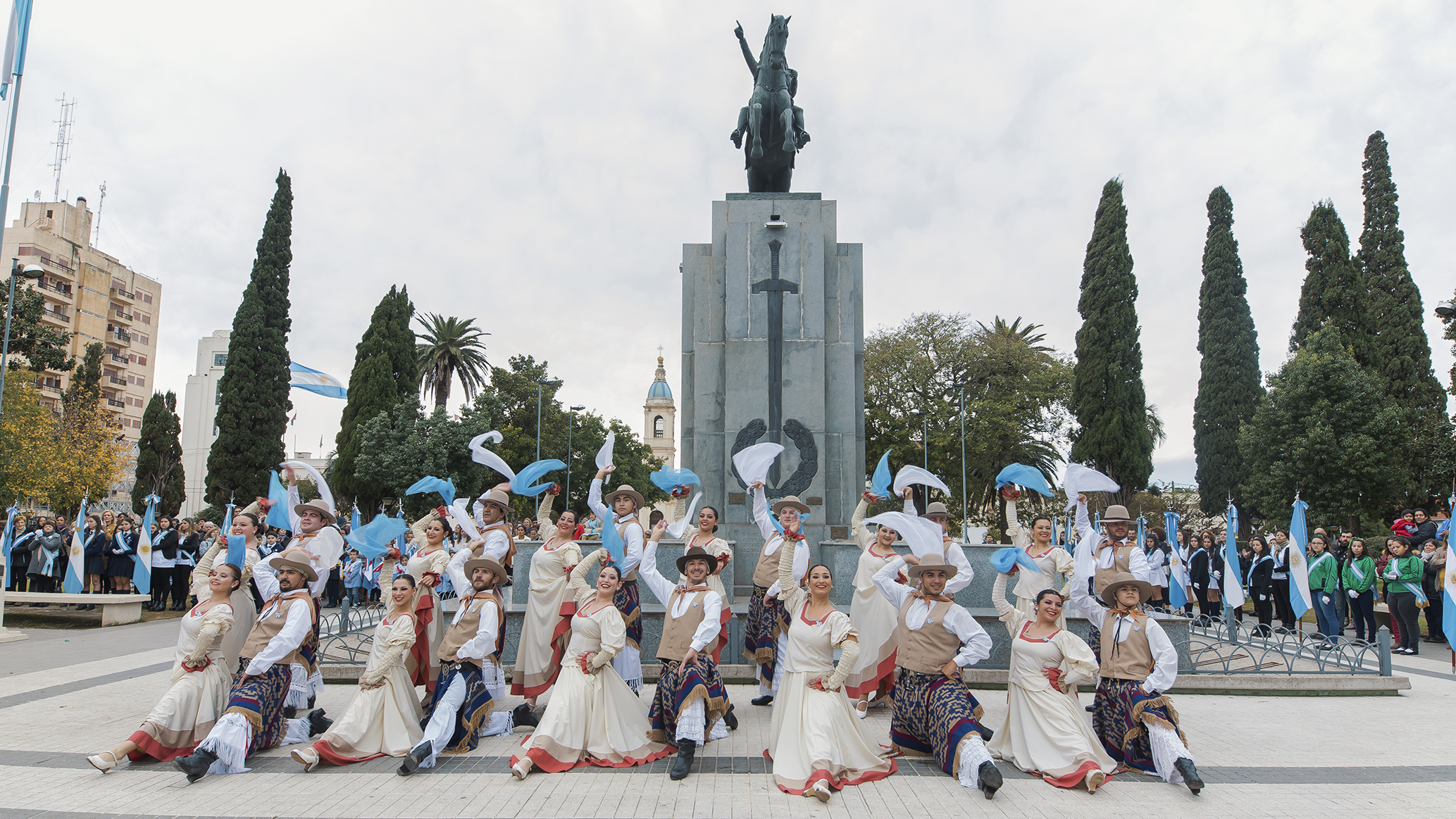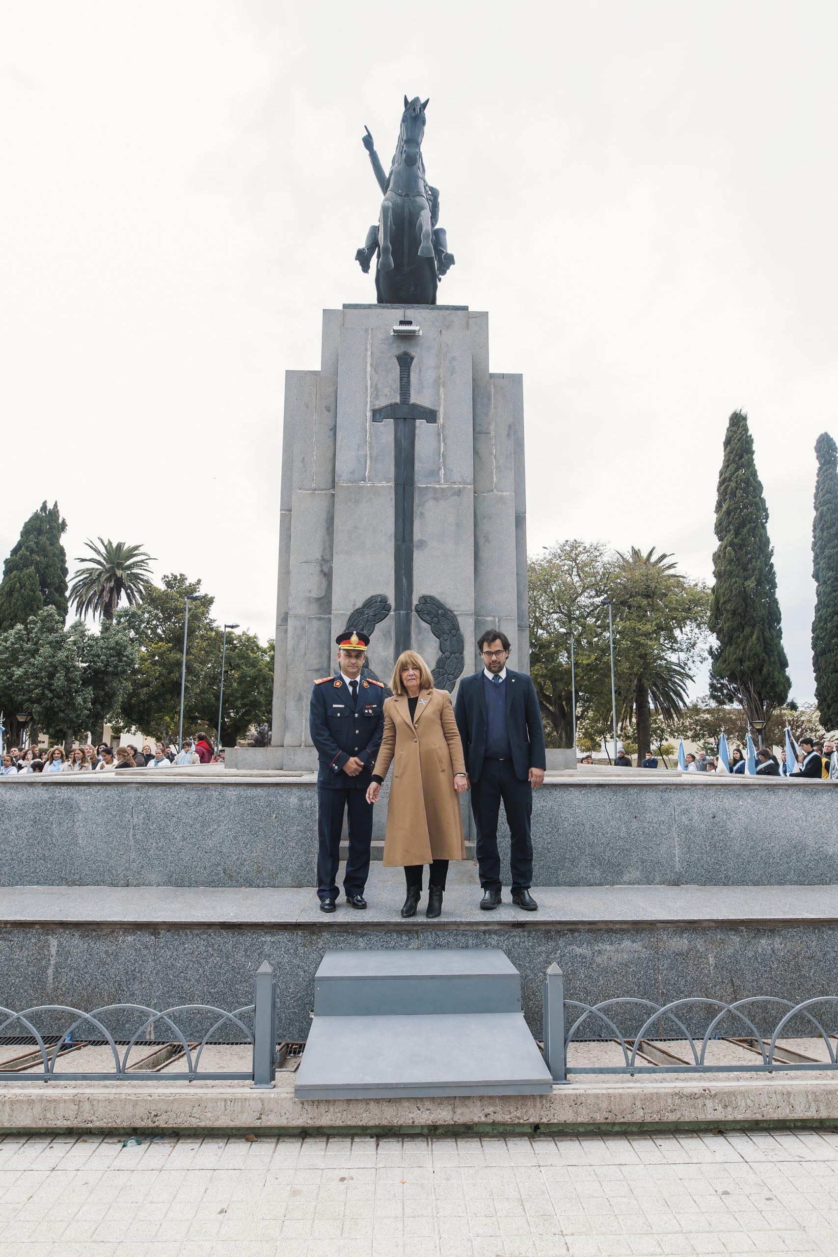 También en señal de honor y gratitud a los protagonistas de la gesta histórica, se depositó una corona de laureles al pie del monumento al Gral. San Martín.