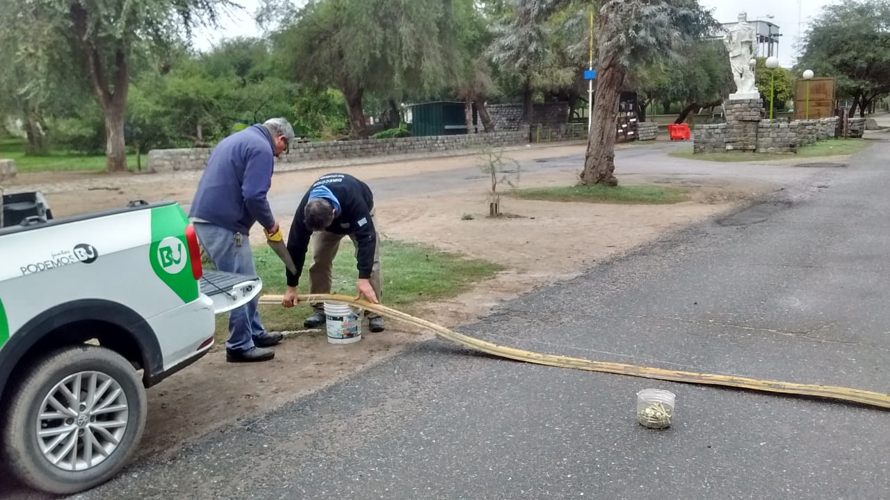 Tal lo anunciado en su momento, personal del Taller Vial de la secretaría de Convivencia Ciudadana, está instalando limitadores de velocidad en ambos sentidos de la avenida del Gaucho en el Parque Tau.