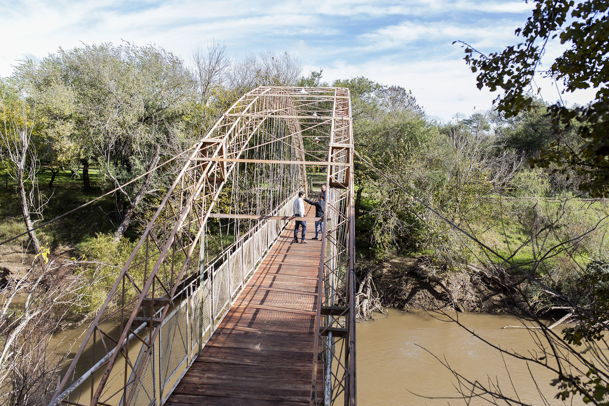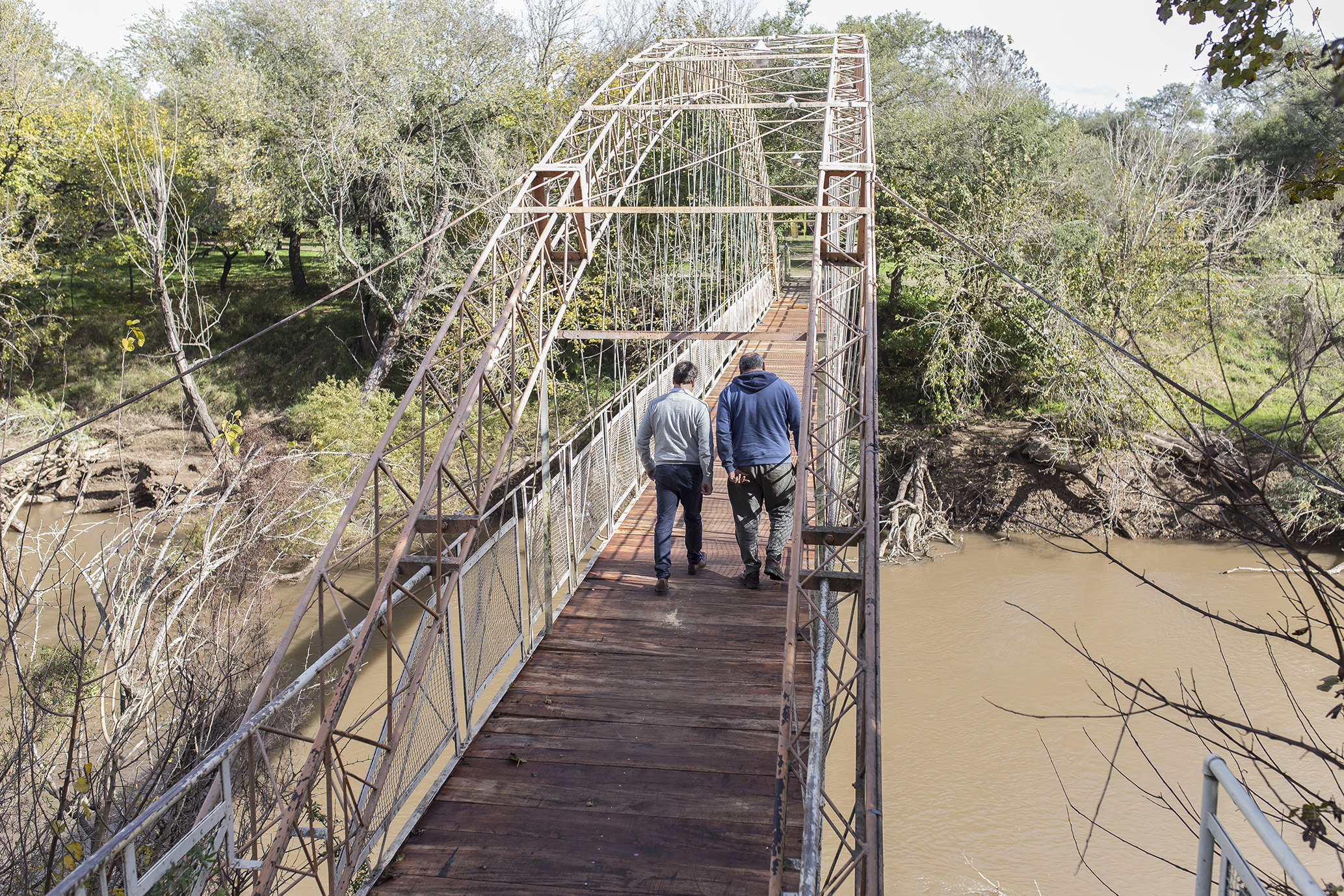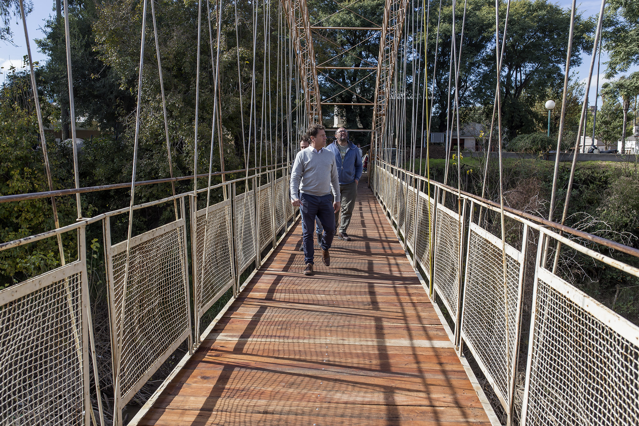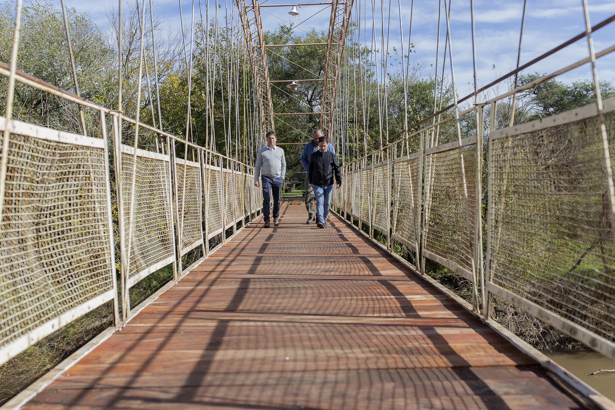 En la mañana de hoy, el intendente, Dr. Carlos Briner, estuvo en la pasarela Alejandro Domínguez a fin de presenciar la obra de cambio completo de tablas y sostenes metálicos de las bases de la misma.